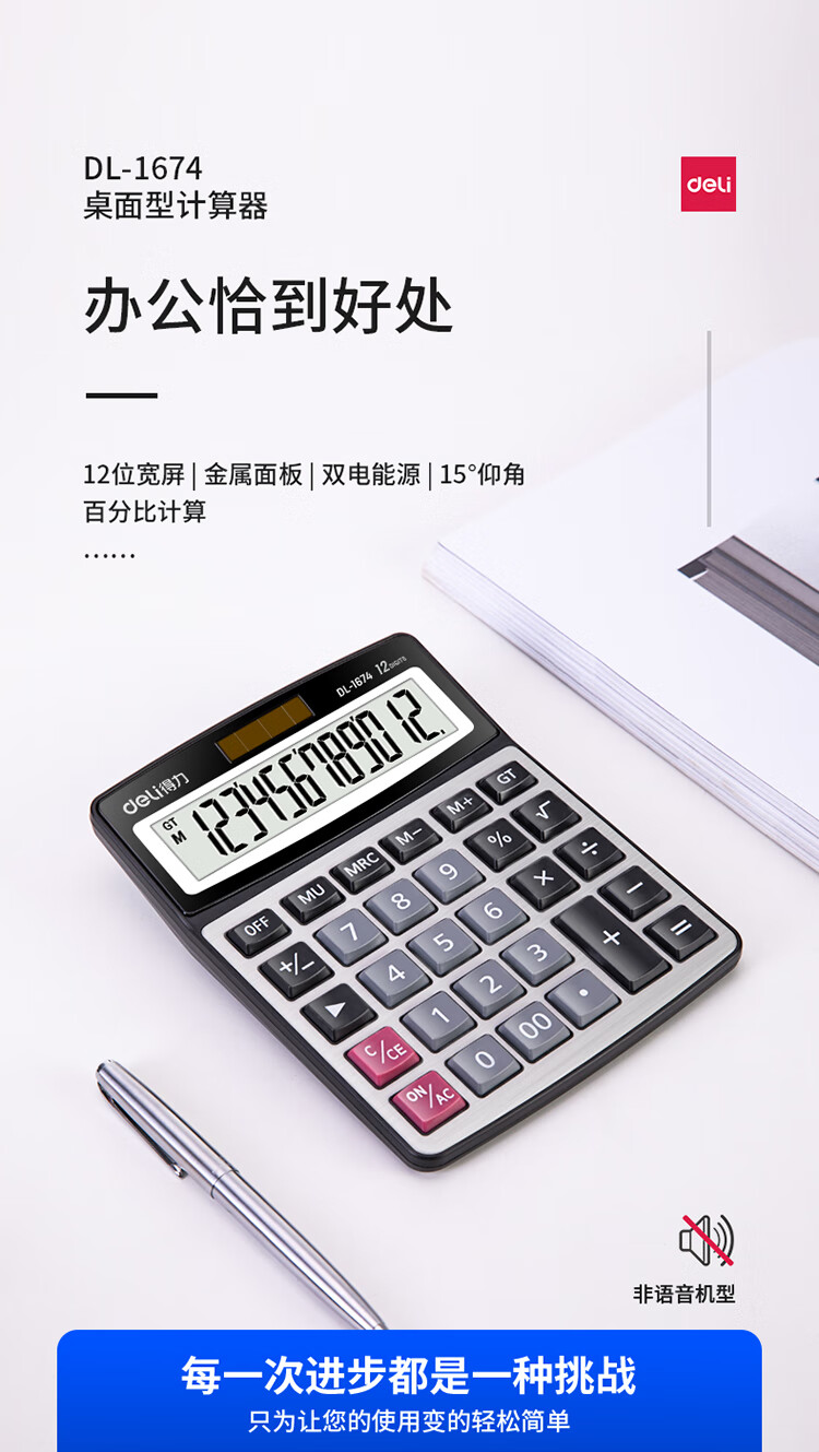 商品名稱:得力1674 金屬面板桌面辦公計算器 財務金融計算 耐磨按鍵桌面計算機 辦公用品 銀色