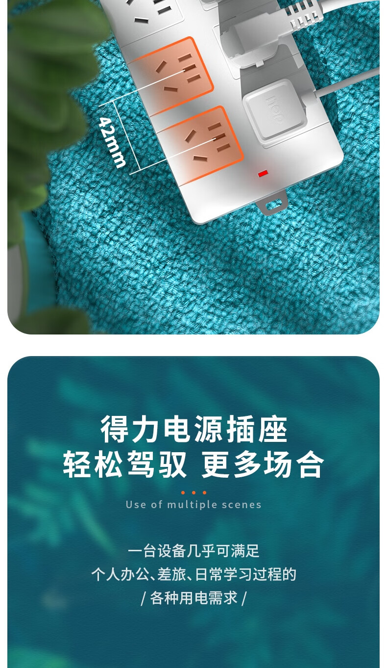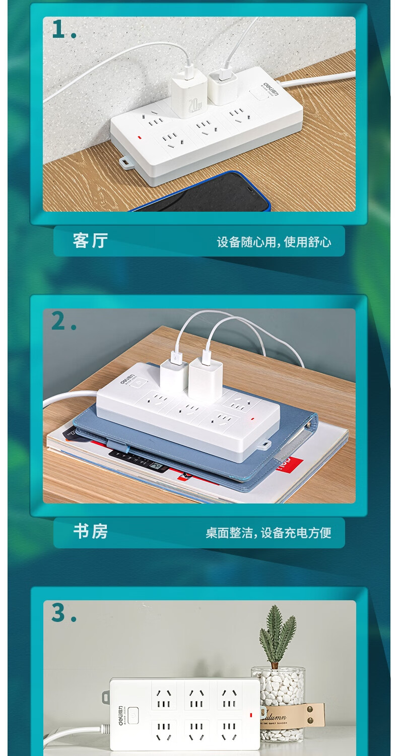 商品名稱:得力18168-03 多功能插排/插線板/拖線板/接線板/電插板/插座板 6位3米(個(gè))