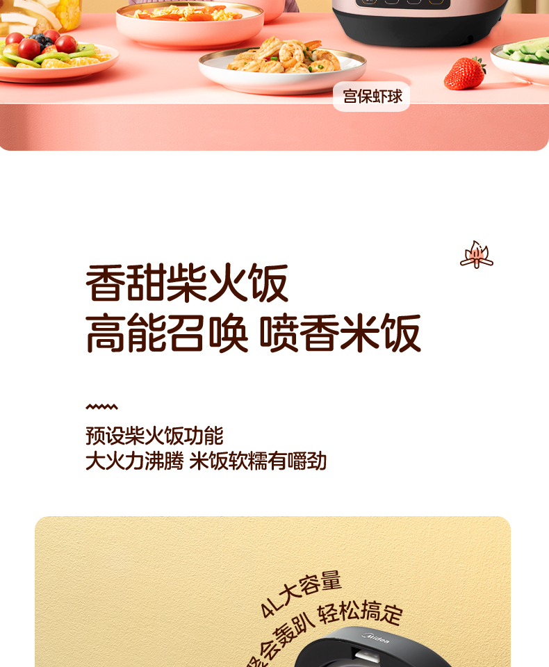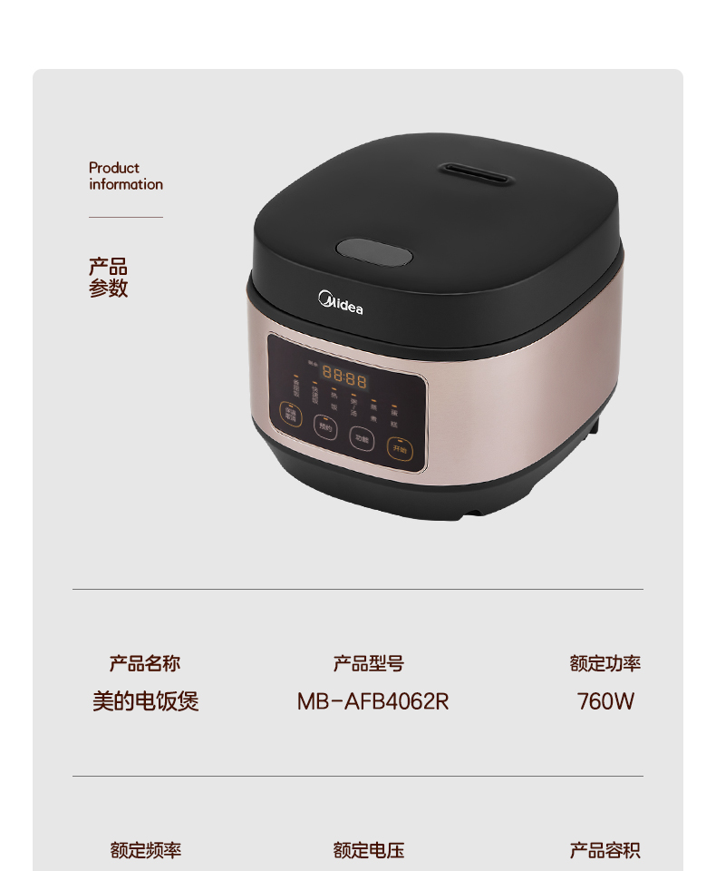 商品名稱:美的MB-AFB4062R 電飯煲 電飯鍋底盤加熱智能自動(dòng)4L不粘鍋聚能釜定時(shí)預(yù)約燒湯燒飯