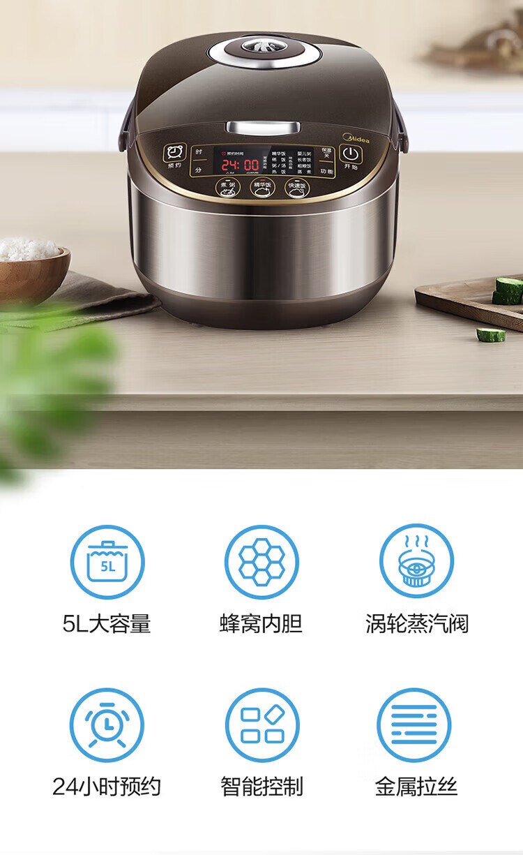 商品名稱:美的WFS5017TM 智能電飯煲 電飯鍋家用5L大容量預(yù)約氣動渦輪防溢鍋金屬機身蒸米飯鍋(3-10人)
