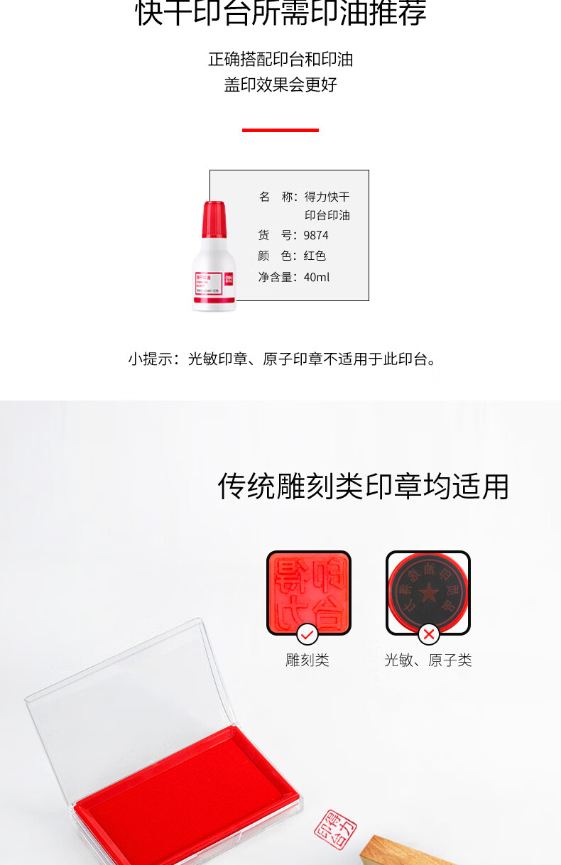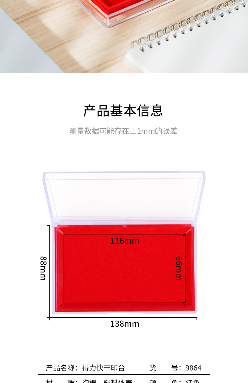 商品名稱:得力9864 印臺 137*88mm透明外殼方形快干印臺印泥 辦公用品