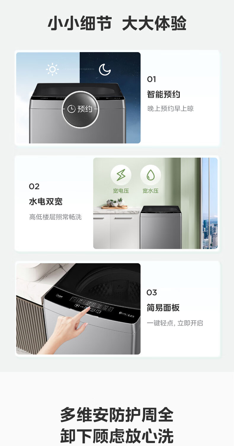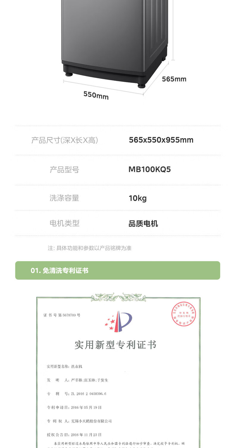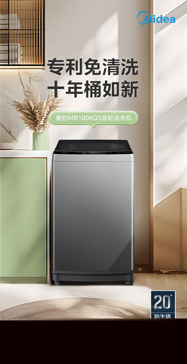商品名稱(chēng):美的MB100KQ5 波輪洗衣機(jī)全自動(dòng) 10公斤kg大容量除螨洗甩干脫水宿舍租房可預(yù)約【隨心洗系列】