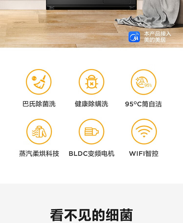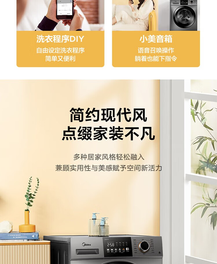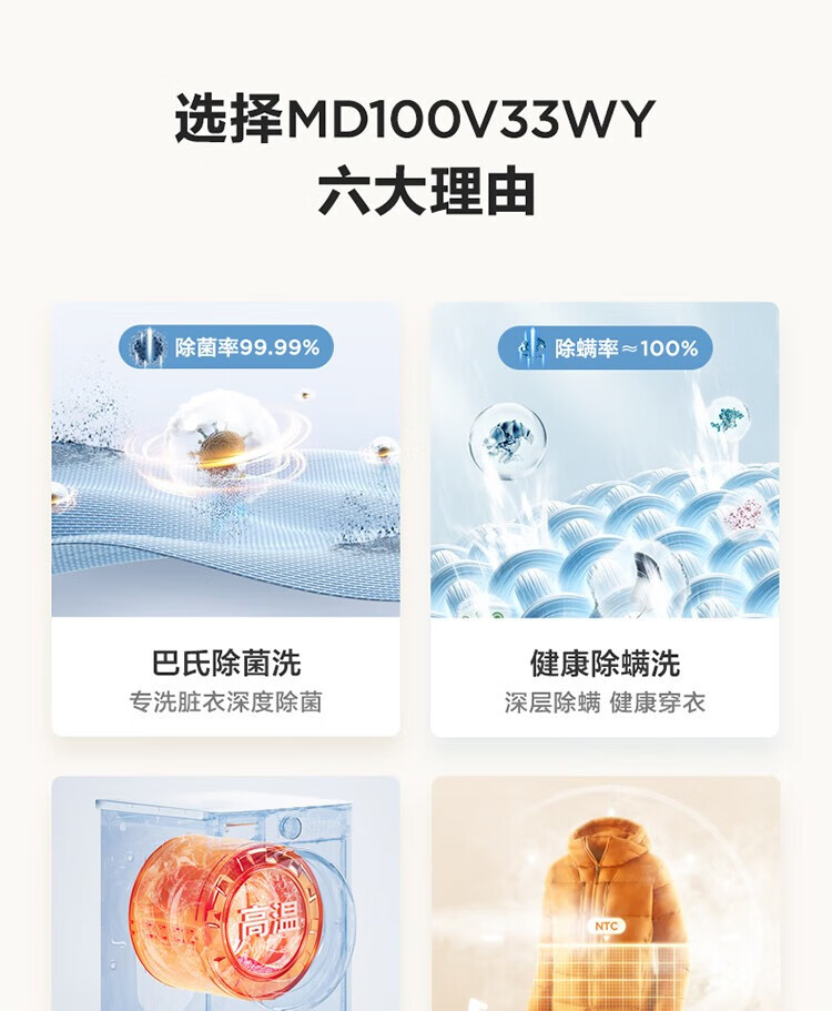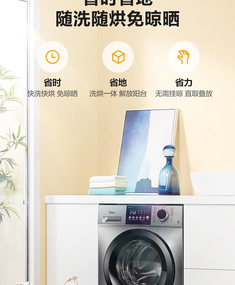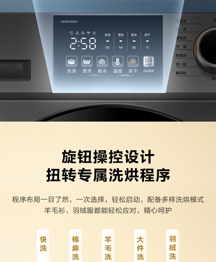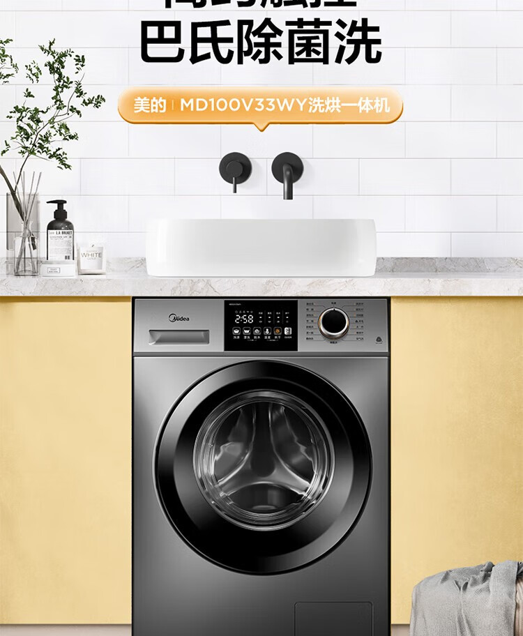 商品名稱:美的MD100V33WY 滾筒洗衣機全自動 V33 洗衣機帶烘干洗烘一體機 除菌凈螨 簡尚系列 超薄款 10公斤