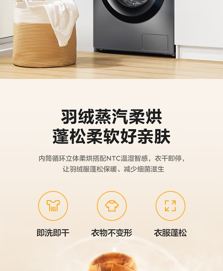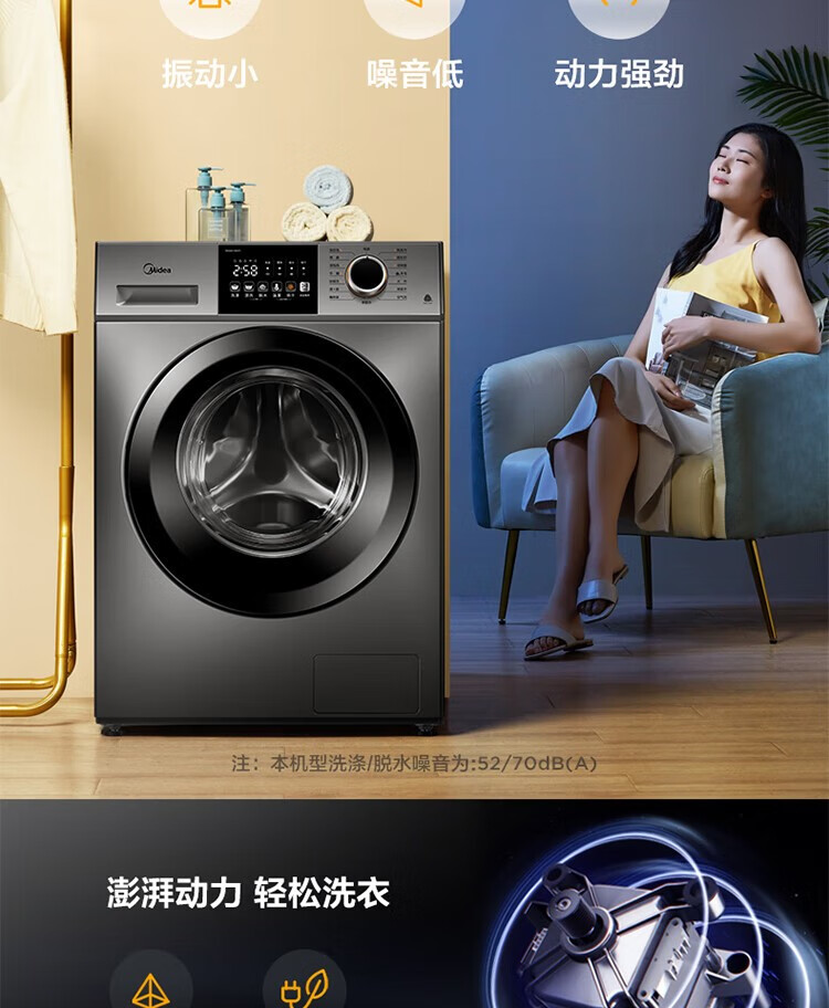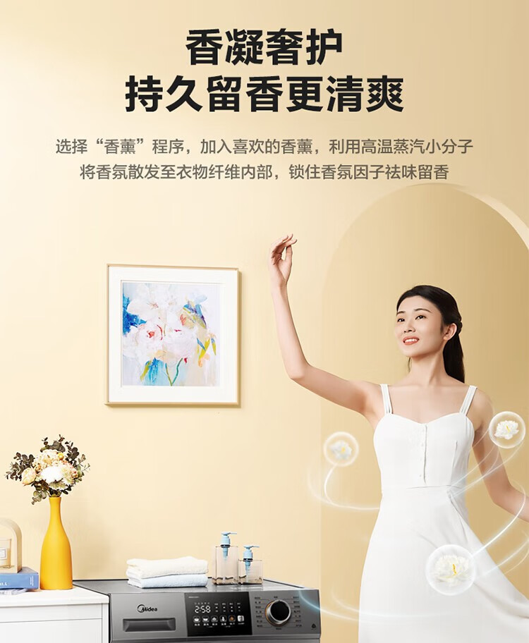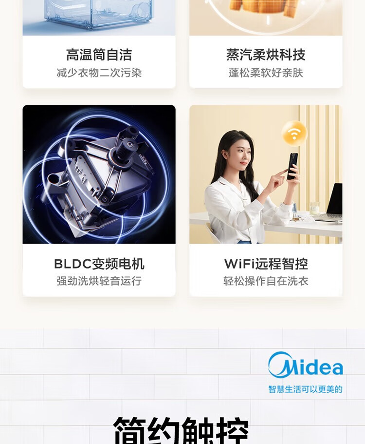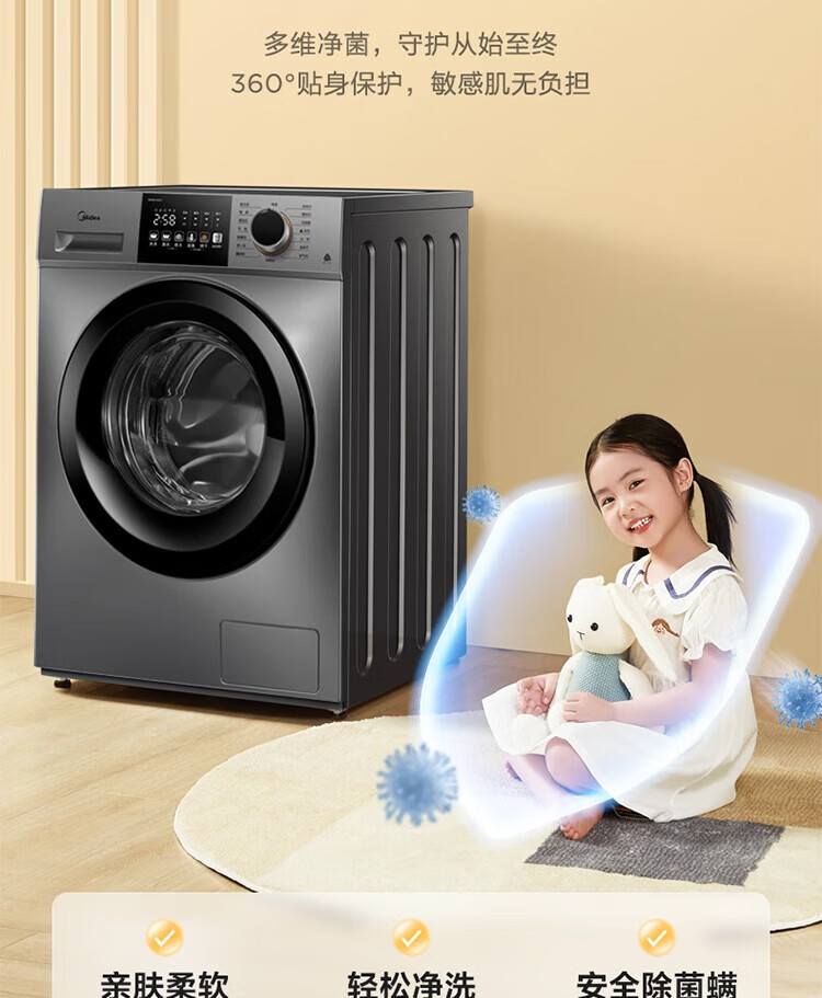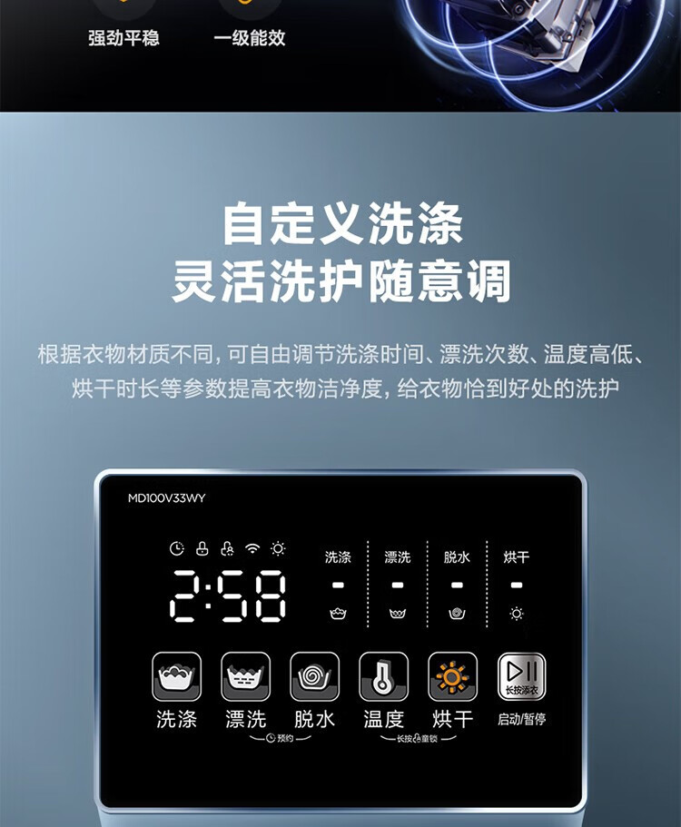商品名稱:美的MD100V33WY 滾筒洗衣機全自動 V33 洗衣機帶烘干洗烘一體機 除菌凈螨 簡尚系列 超薄款 10公斤