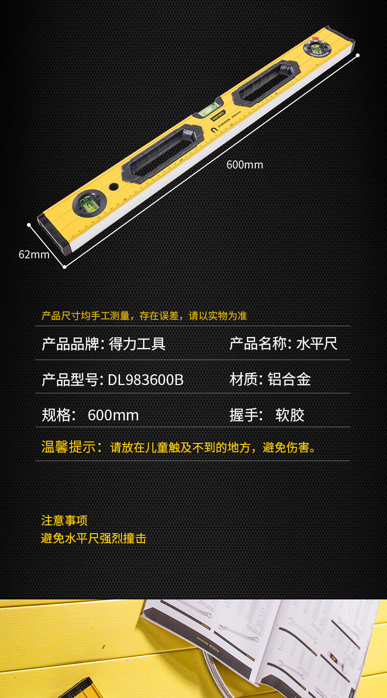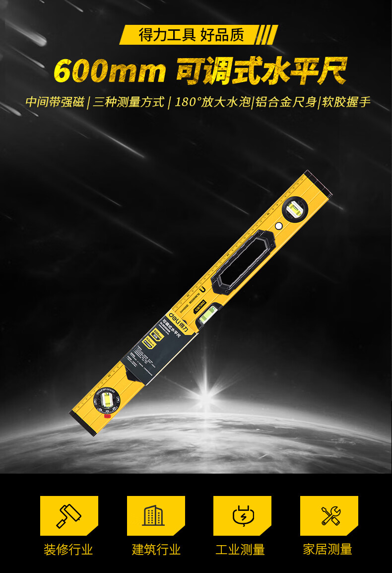 商品名稱:得力DL983600B 可調(diào)式水平尺 高強磁多角度精度鋁合金水平測量尺防摔平衡儀600mm