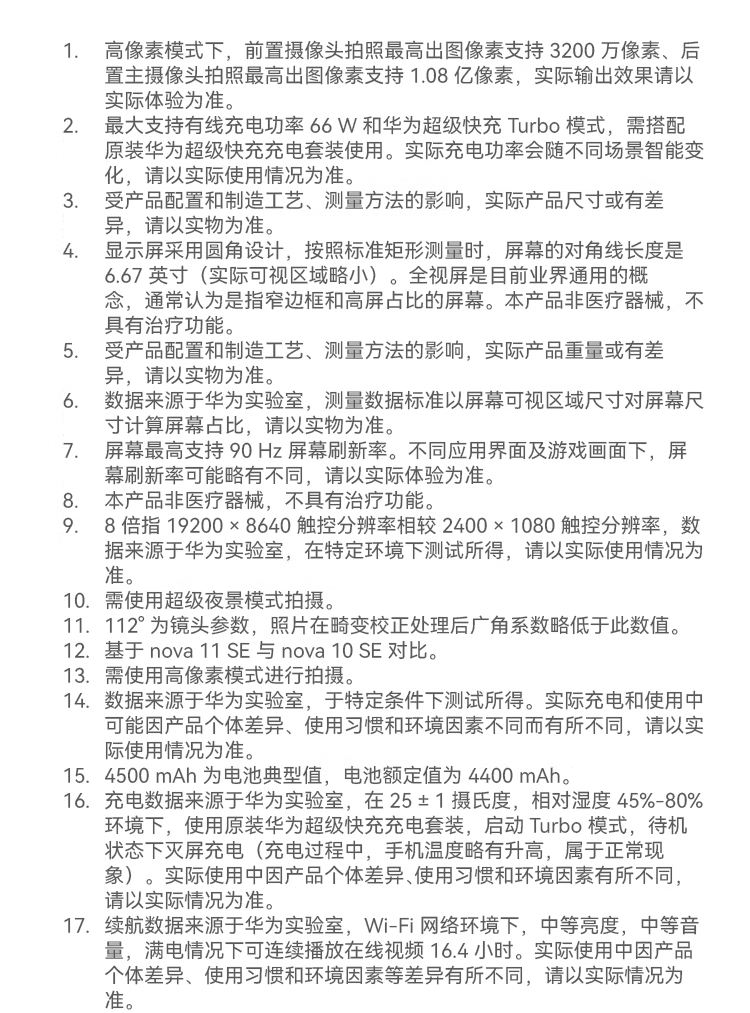商品名稱:華為 nova 11 SE前后雙高清攝像手機 一億像素光影人像 256GB 華為鴻蒙智能手機