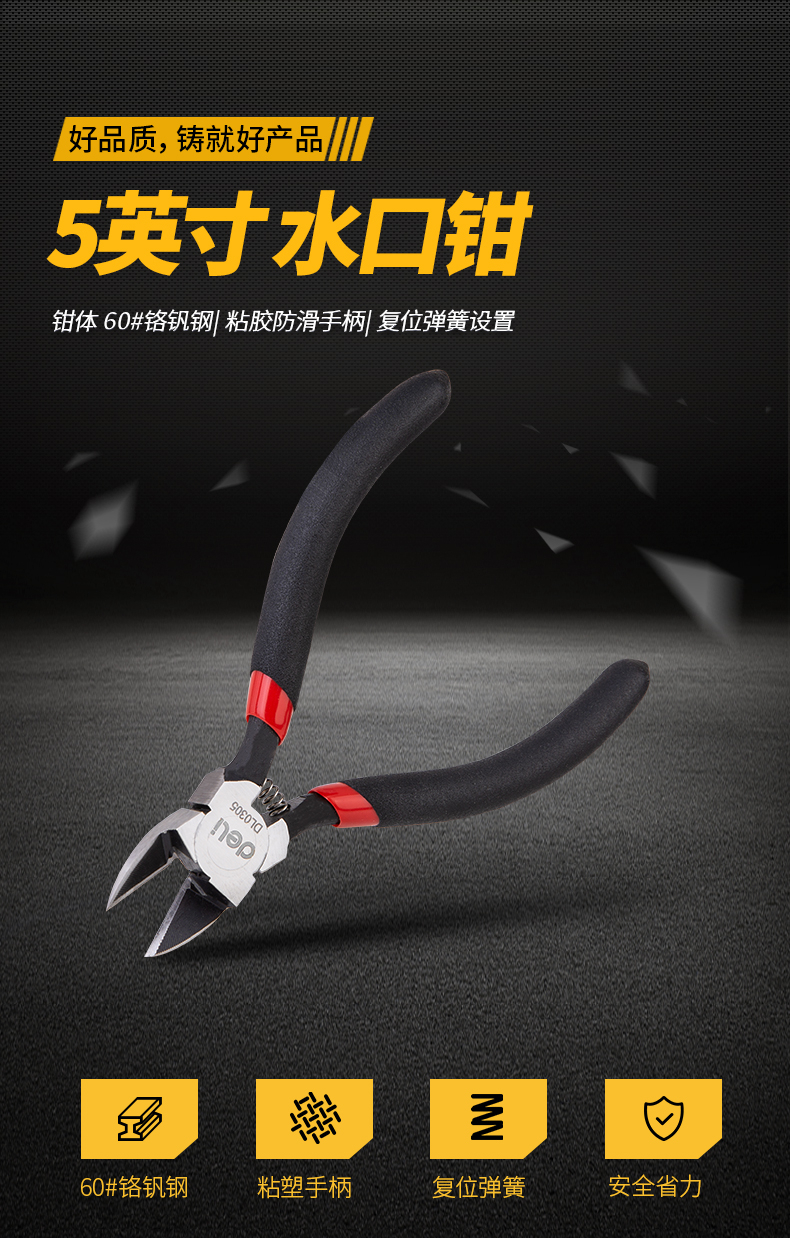 商品名稱:得力DL0305 防滑水口鉗 水口剪電子剪塑料鉗斜口鉗5英寸鉻釩鋼專業(yè)款