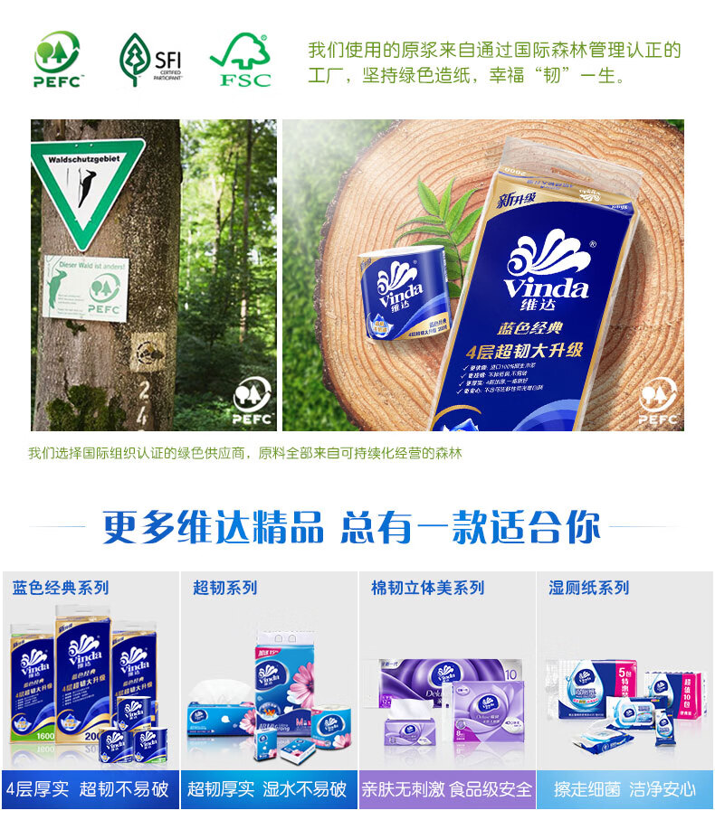 商品名稱:維達(dá) 有芯卷紙 藍(lán)色經(jīng)典4層200克*10卷 厚韌衛(wèi)生紙 卷筒紙