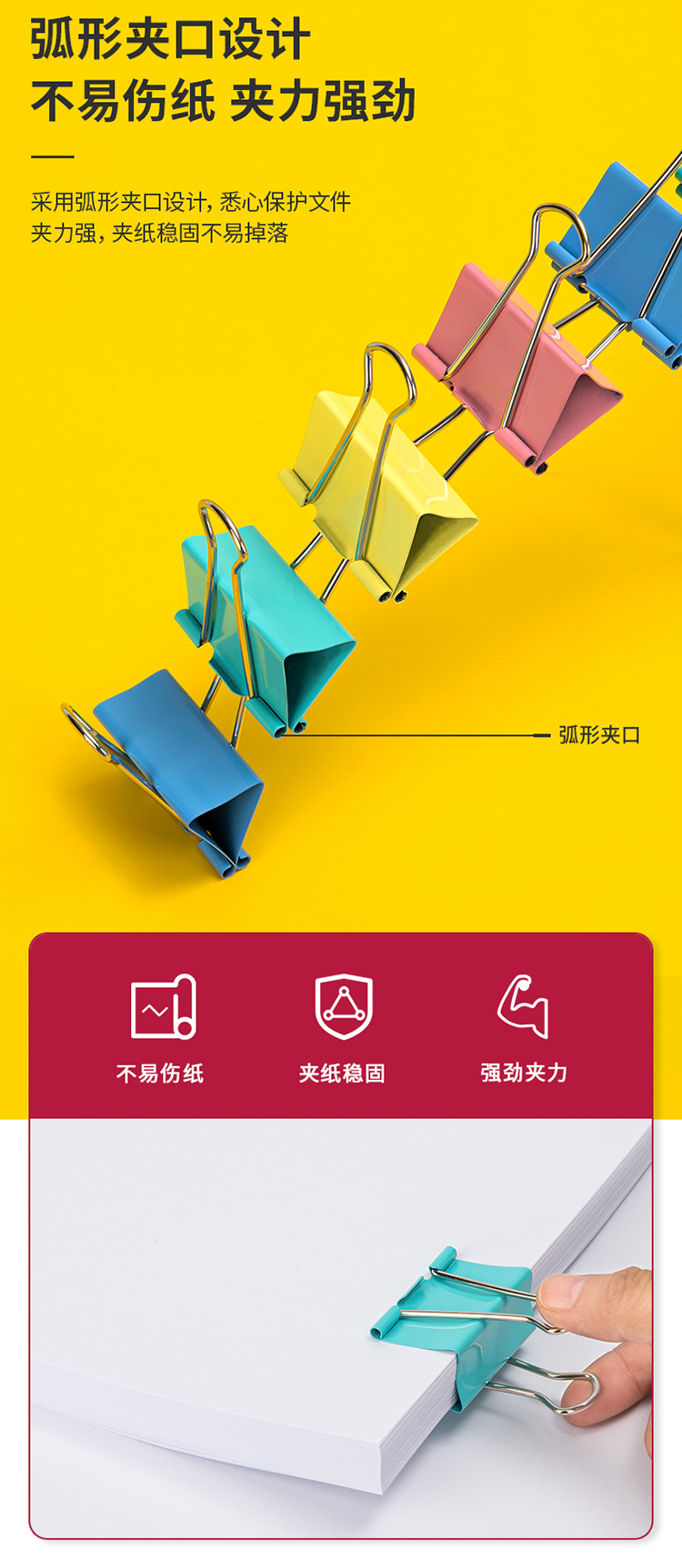 商品名稱:得力8552ES 彩色長尾夾 2#41mm大號金屬票夾燕尾夾票據(jù)文件夾子 辦公用品 24只/筒