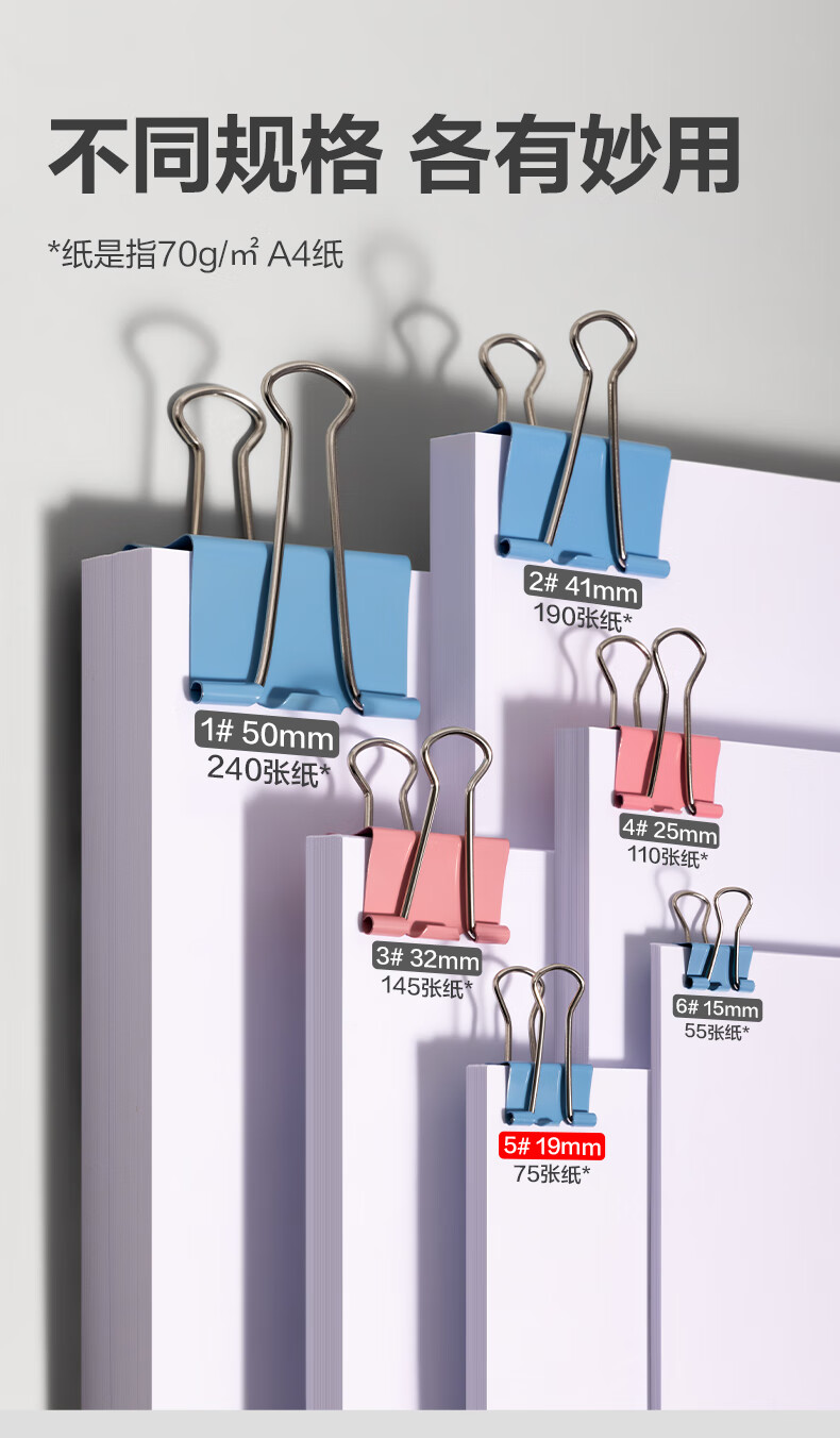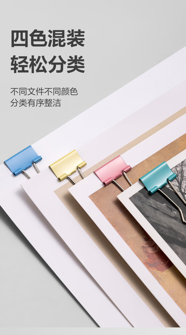 商品名稱:得力8555ES 彩色長(zhǎng)尾夾 5#19mm小號(hào)金屬票夾燕尾夾票據(jù)文件夾子 辦公用品 40只/筒