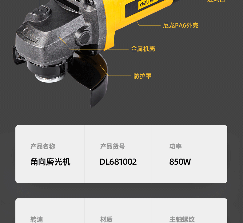 商品名稱:得力DL681002 角磨機 850W角向磨光機切割機打磨機拋光機電動工具