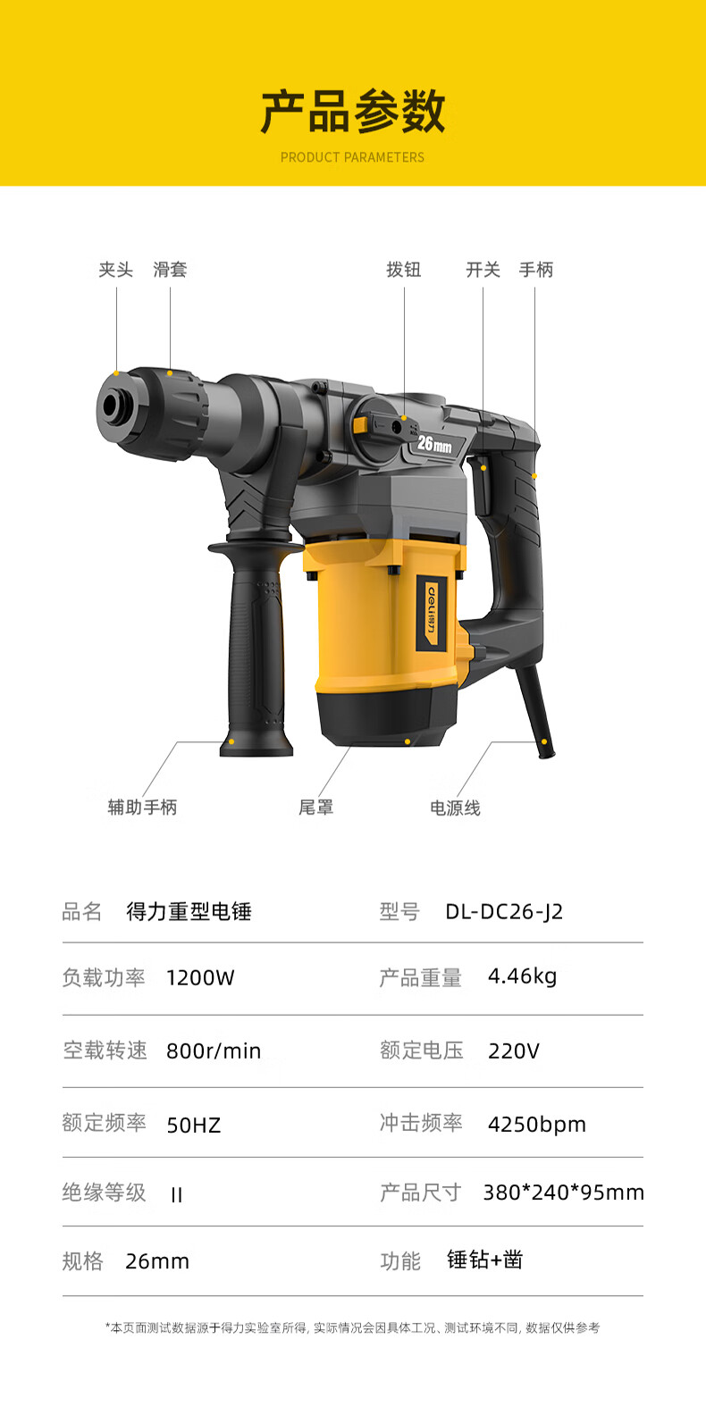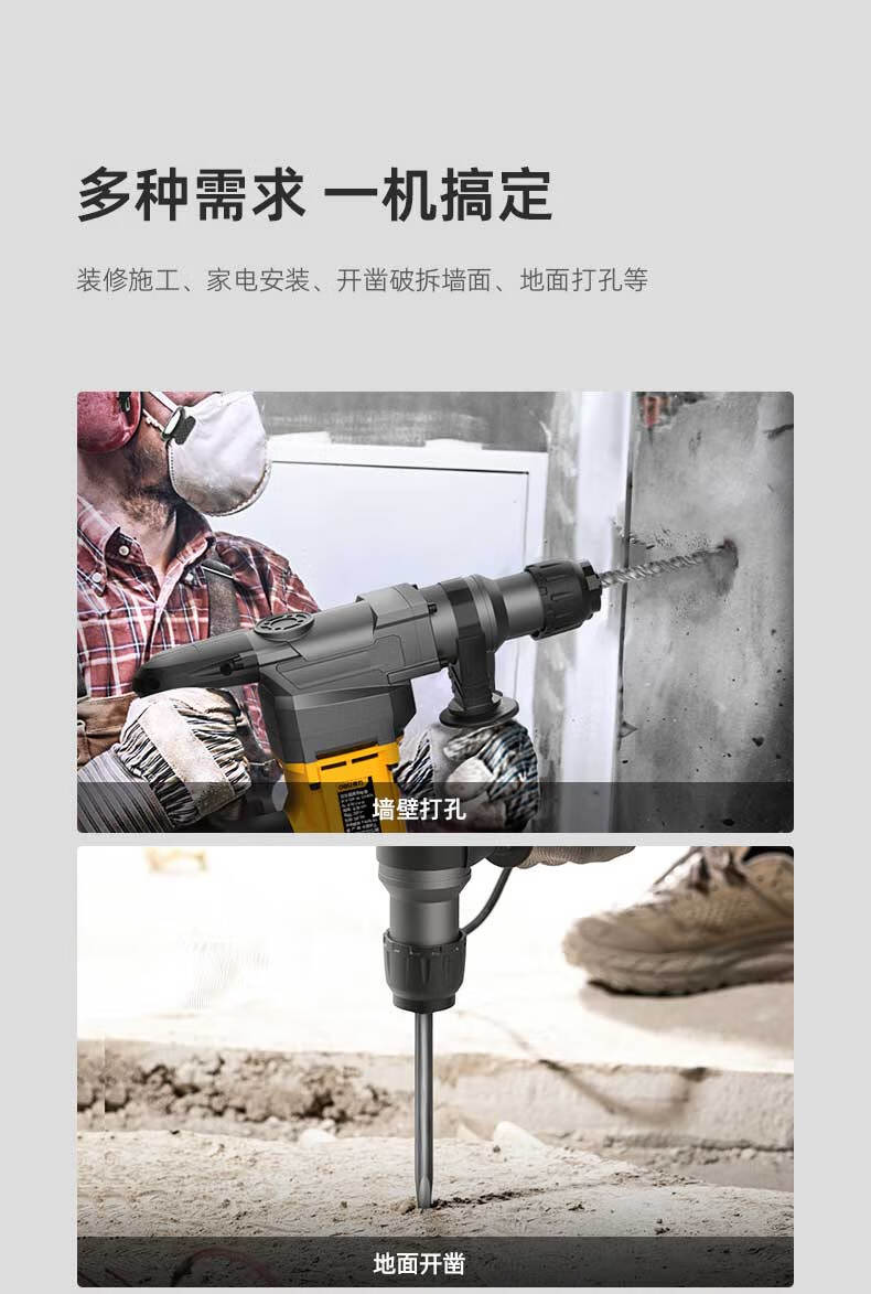 商品名稱:得力DL-DC26-J2 雙功能重型電錘大功率沖擊鉆 多功能電鉆錘鎬兩用混凝土開鑿套裝