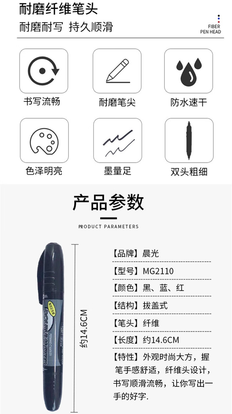 商品名稱:晨光MG2110 雙頭粗桿記號筆 油性馬克筆 物流筆標(biāo)記大頭筆 12支/盒