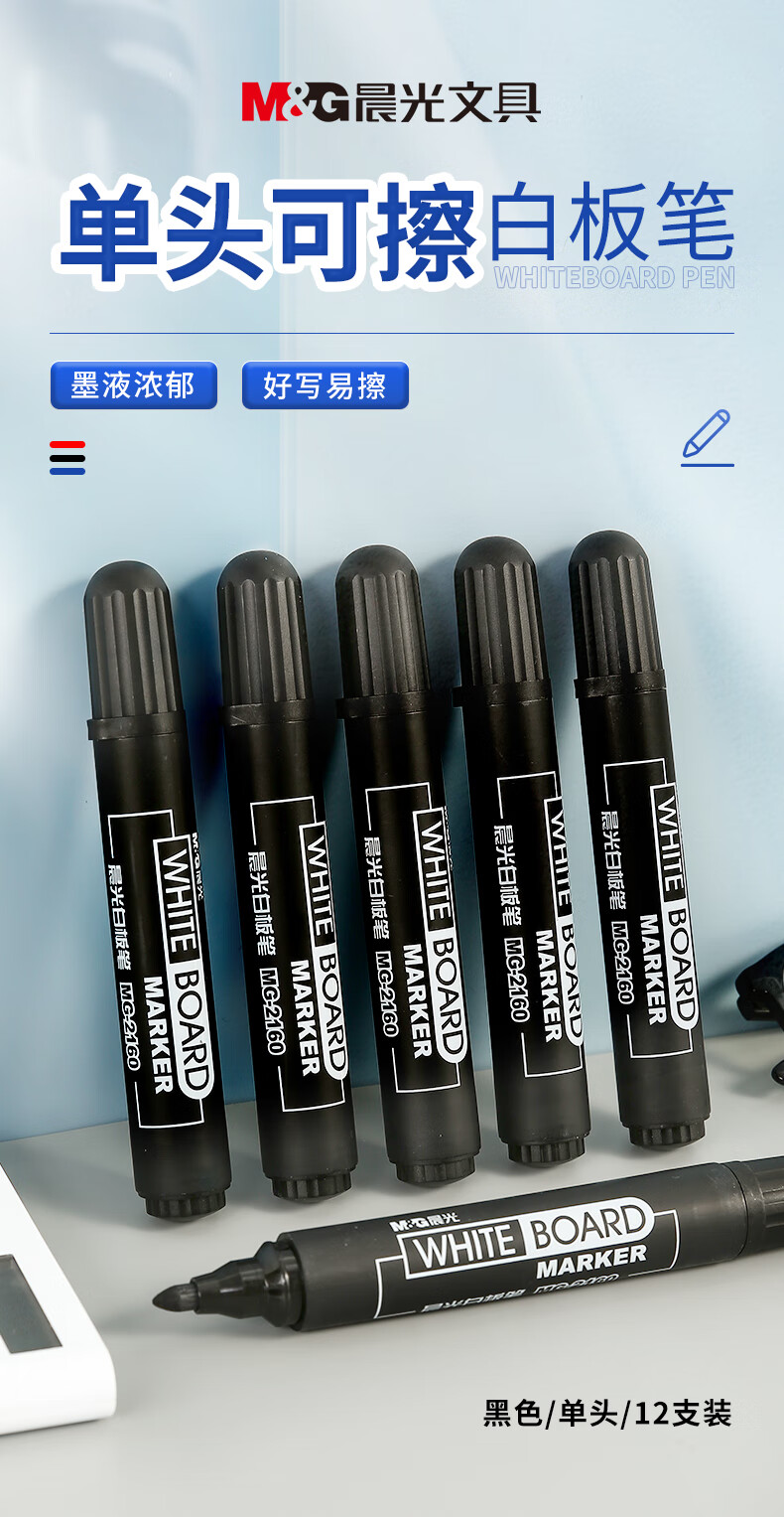 商品名稱:晨光MG2160 可擦白板筆 單頭辦公會議筆 易擦大容量白板筆 12支/盒