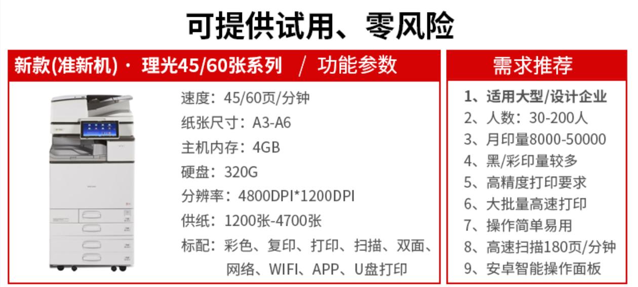 商品名稱:理光復印機租賃 茂名出租A3A4激光彩色黑白復合機(月)