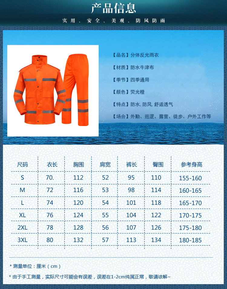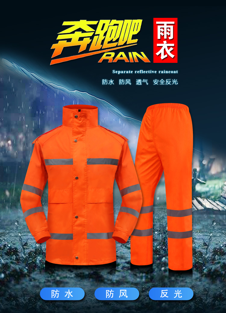 商品名稱:謀福8029 安全反光分體執(zhí)勤雨衣套裝 透氣路政戶外成人騎行交通警示雨衣