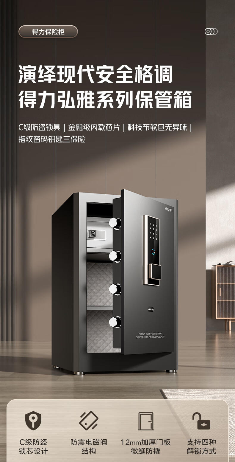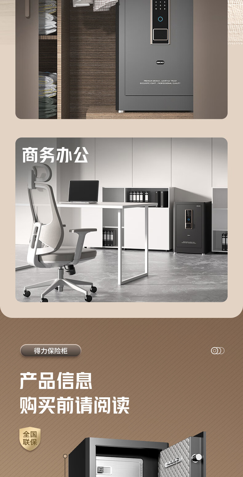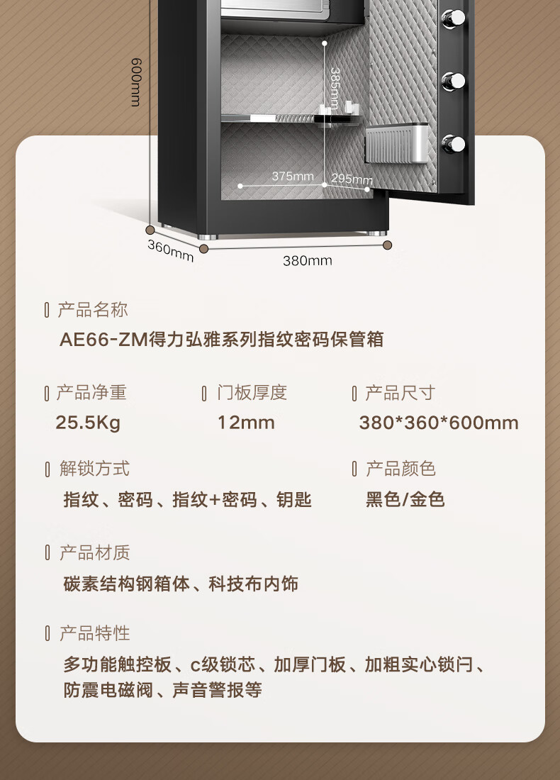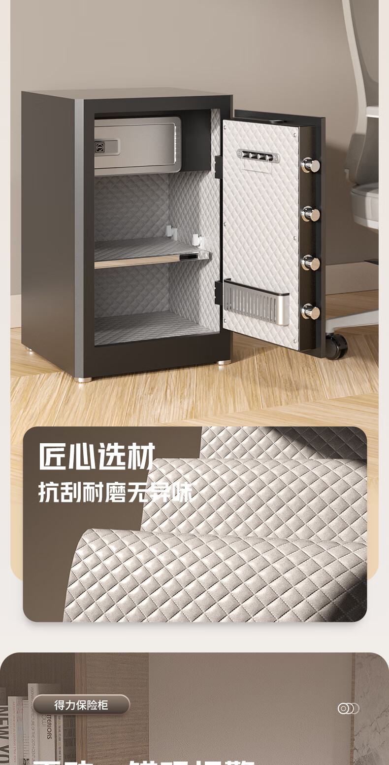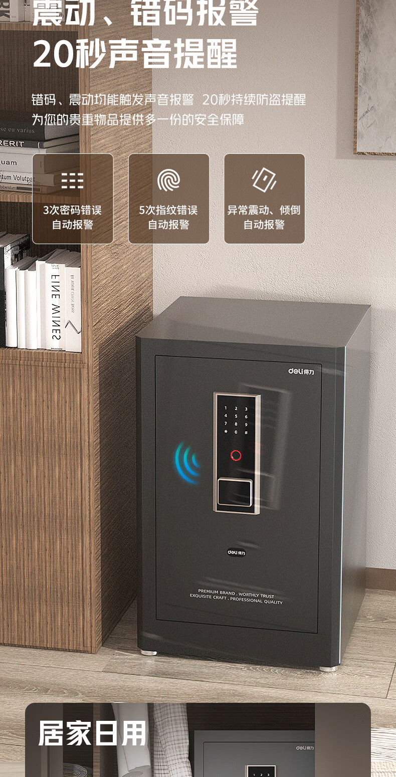 商品名稱:得力AE66-ZM 保險柜 家用指紋密碼保險箱辦公小型保密箱可入墻入柜保險箱床頭保管箱 60cm曜巖黑 弘雅系列