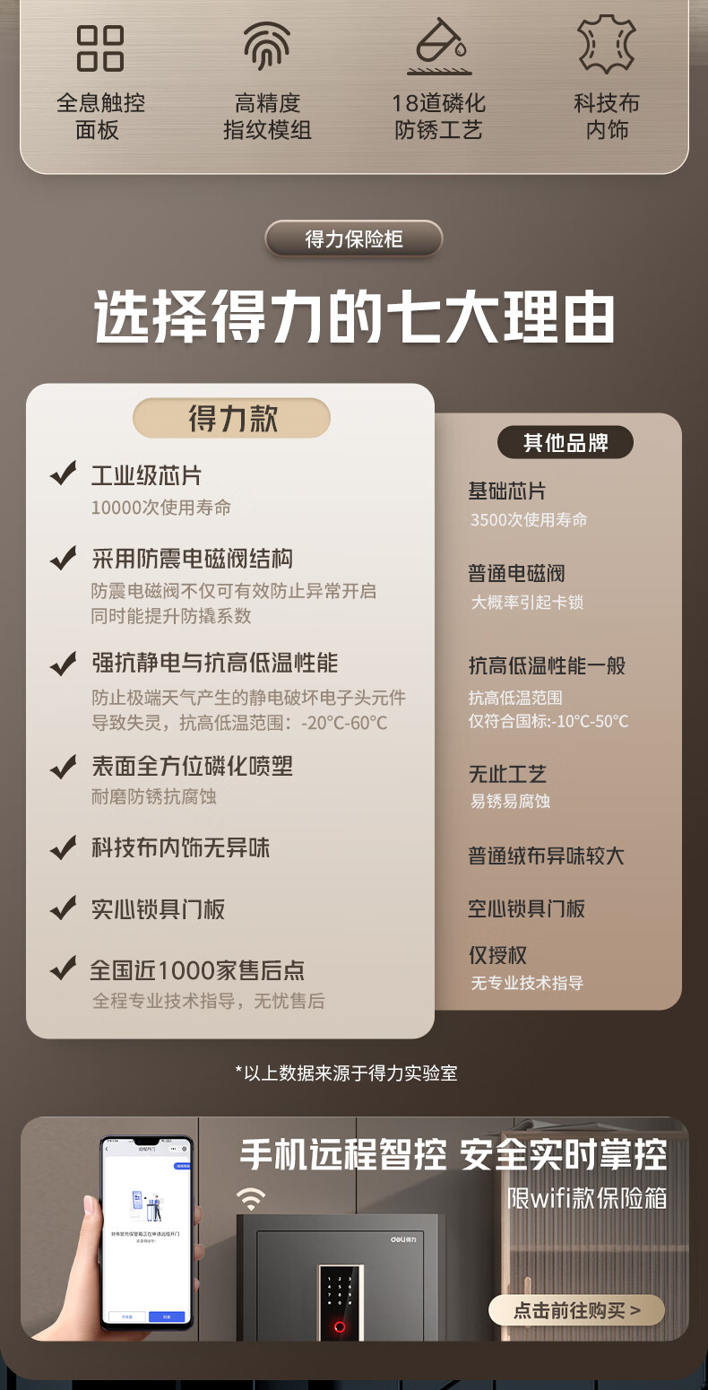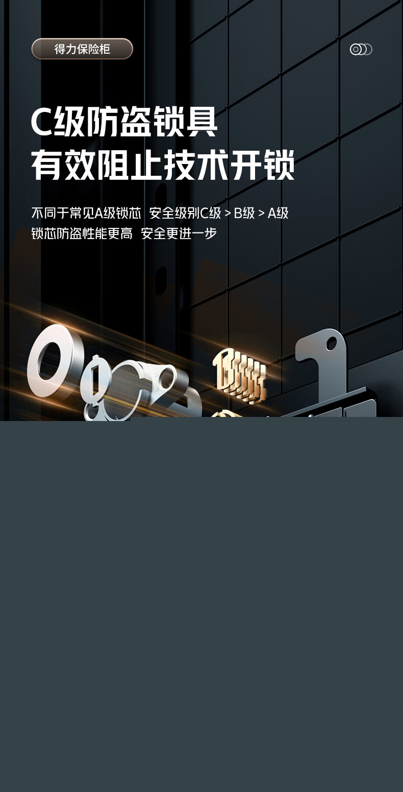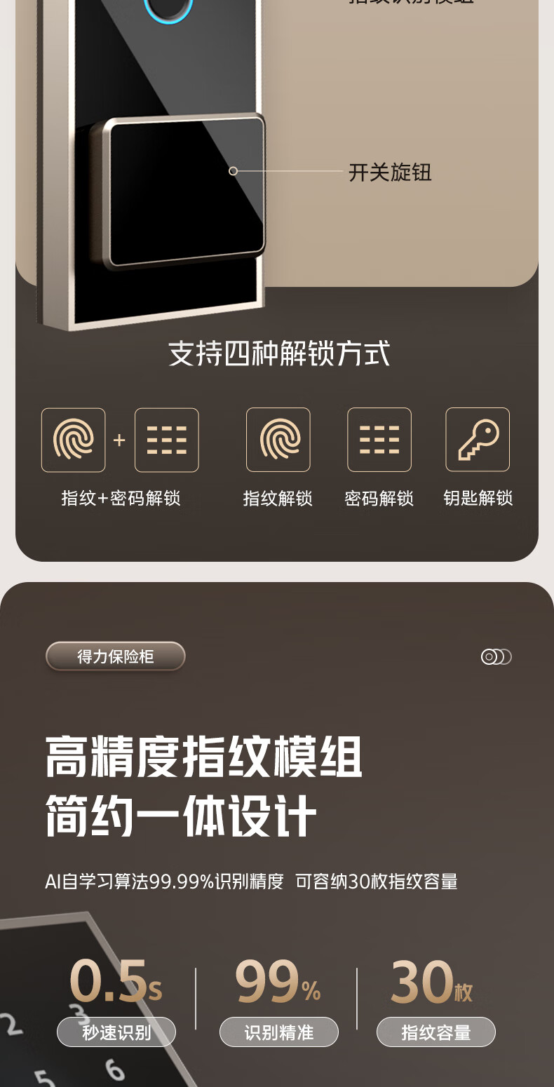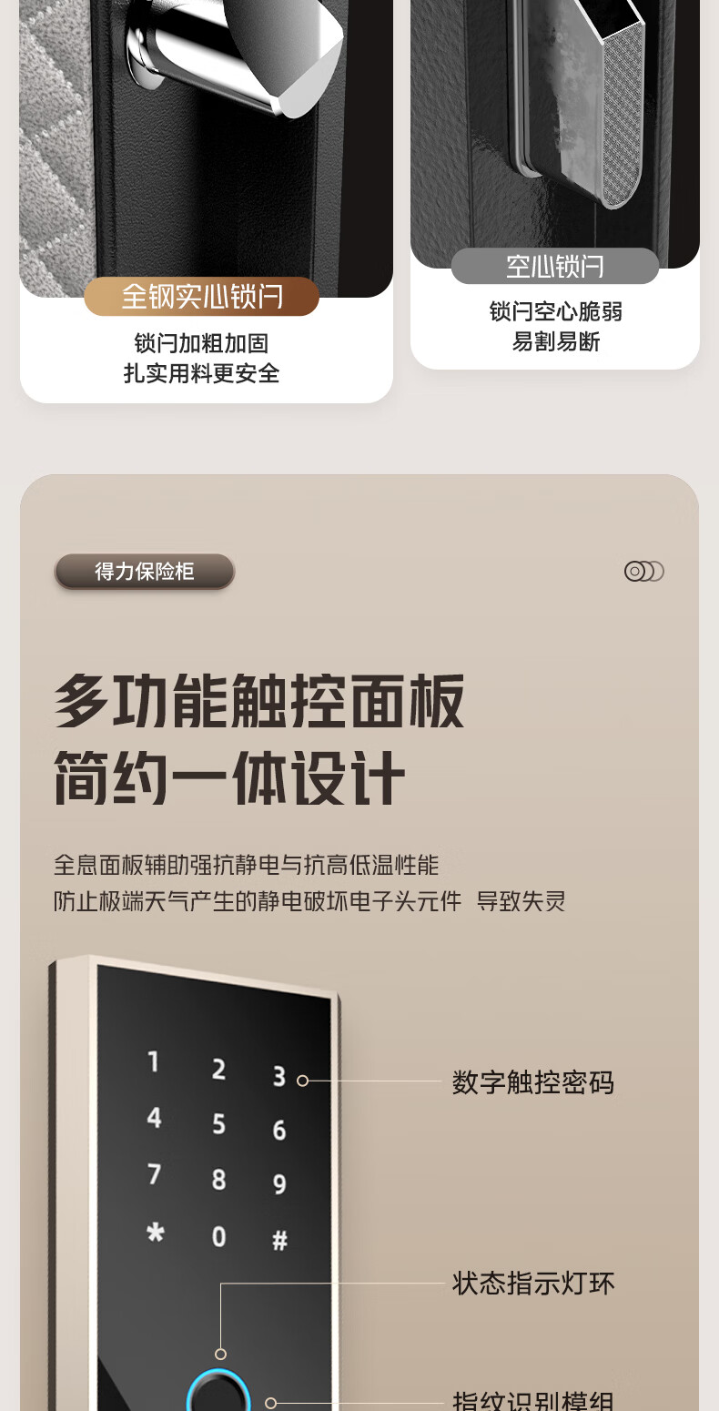 商品名稱:得力AE66-ZM 保險柜 家用指紋密碼保險箱辦公小型保密箱可入墻入柜保險箱床頭保管箱 60cm曜巖黑 弘雅系列