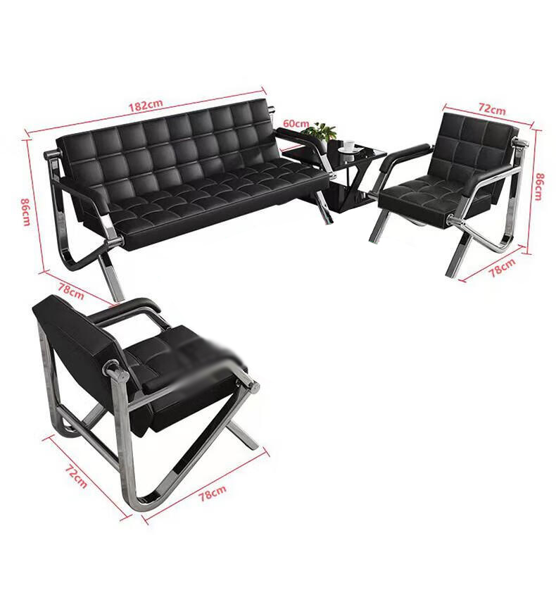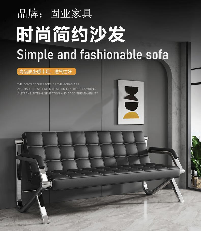 商品名稱:固業(yè)家具 沙發(fā)茶幾組合 簡約接待室會客公共區(qū)小型三人位不銹鋼沙 1+1+3黑色