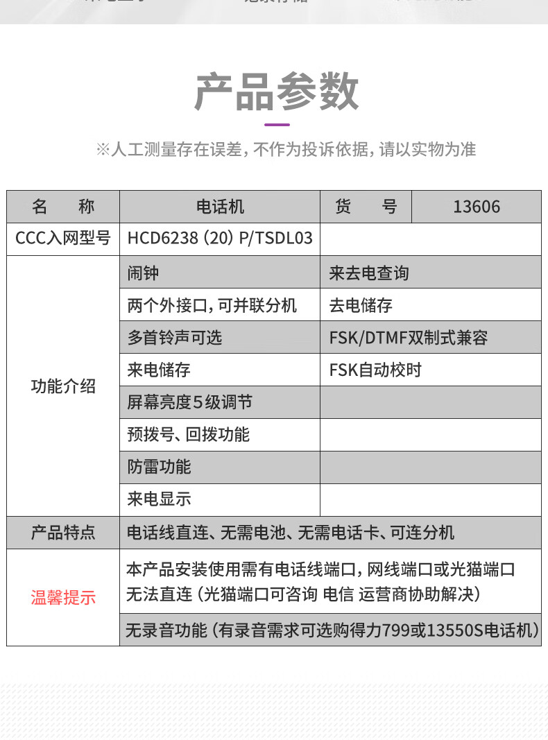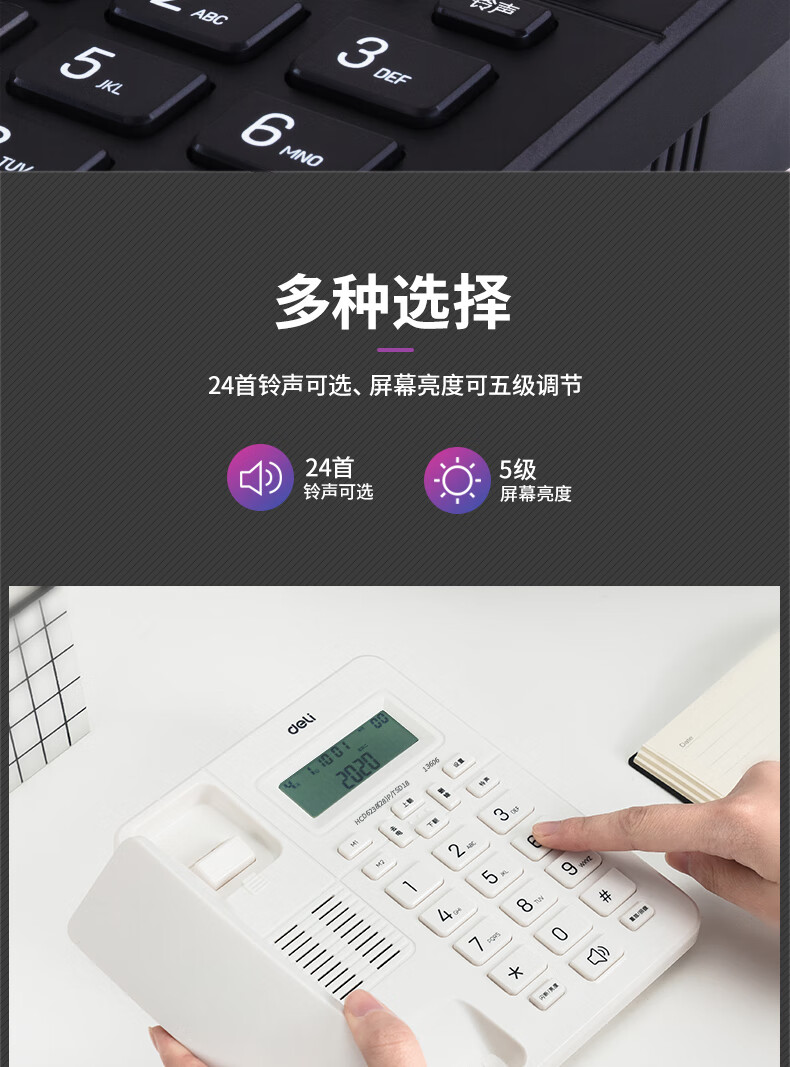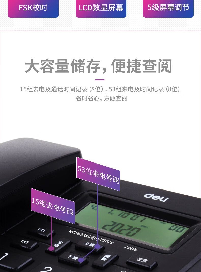 商品名稱:得力 電話機座機 固定電話 辦公家用 來去電查詢 可接分機 13606白