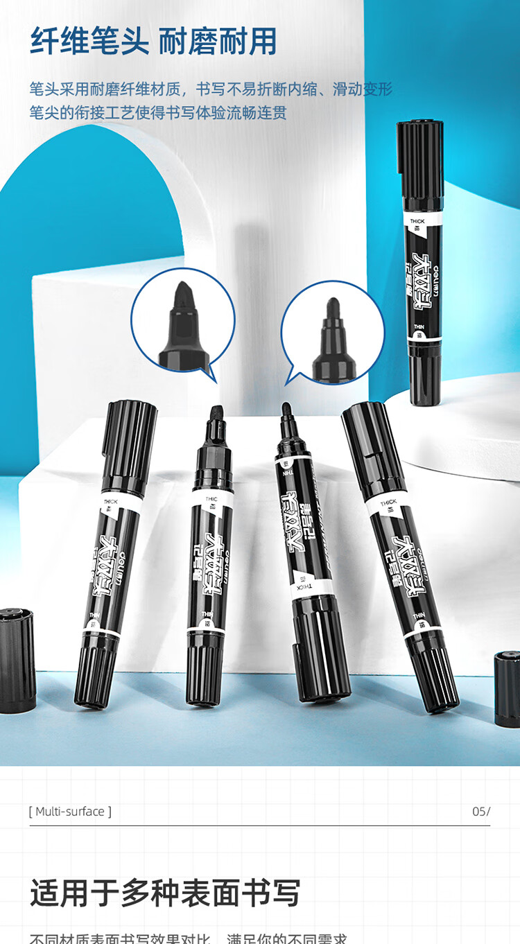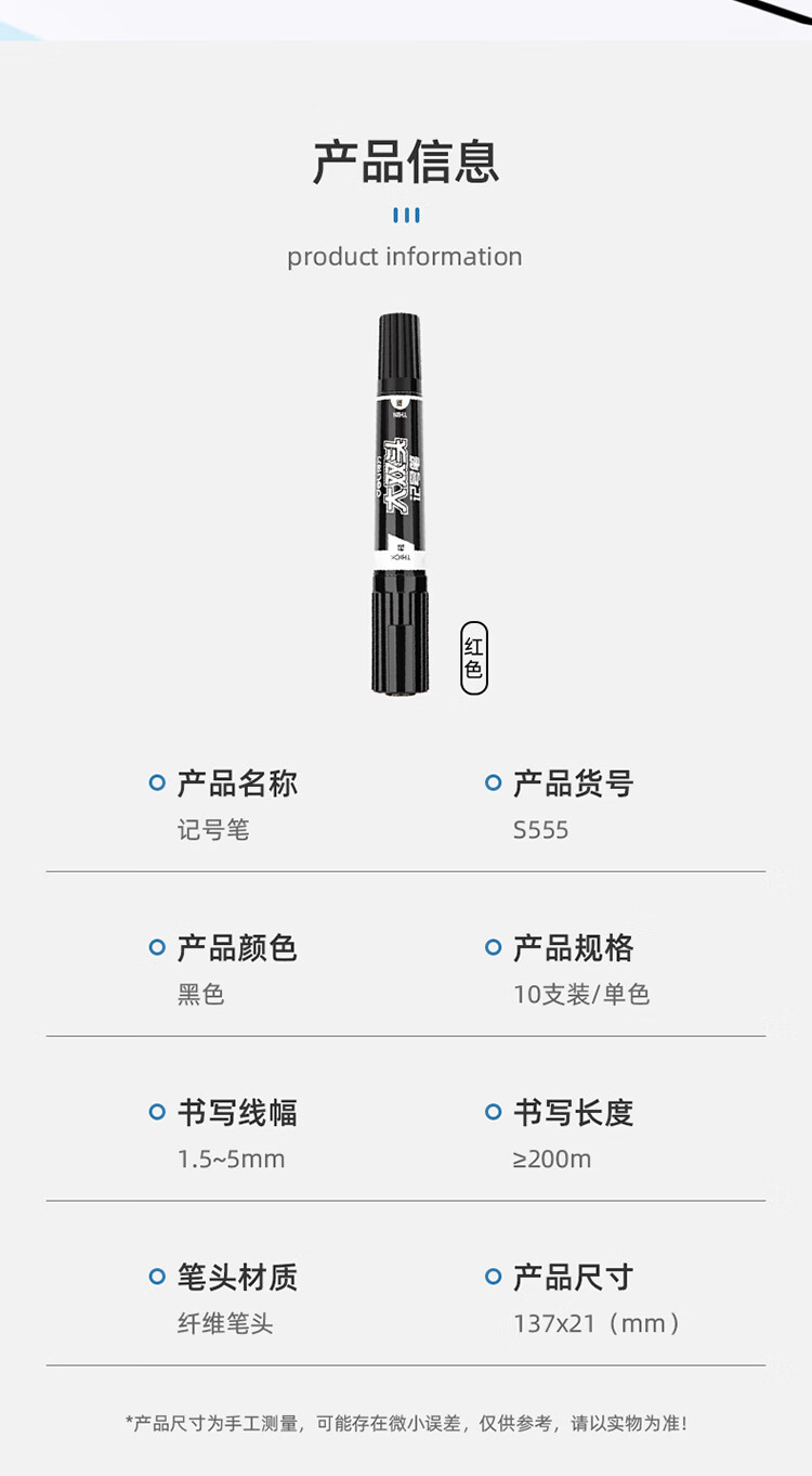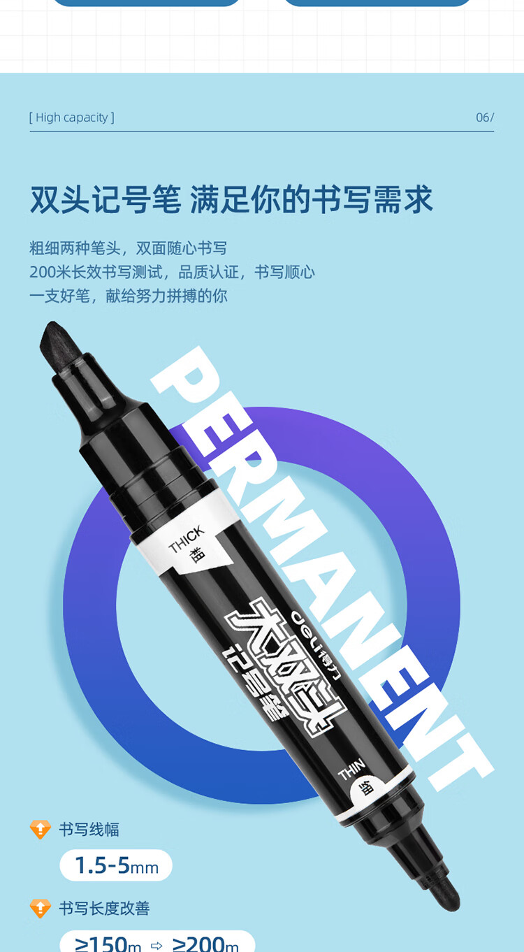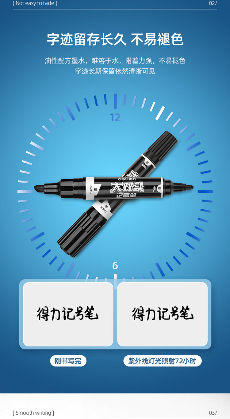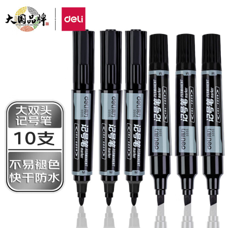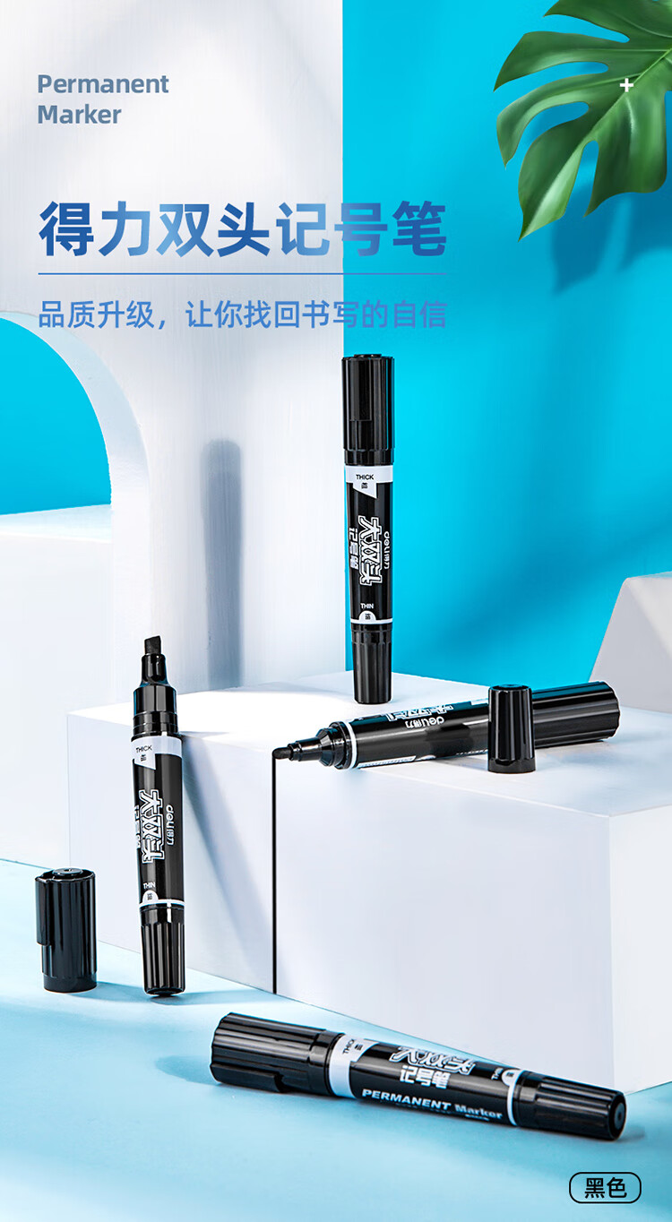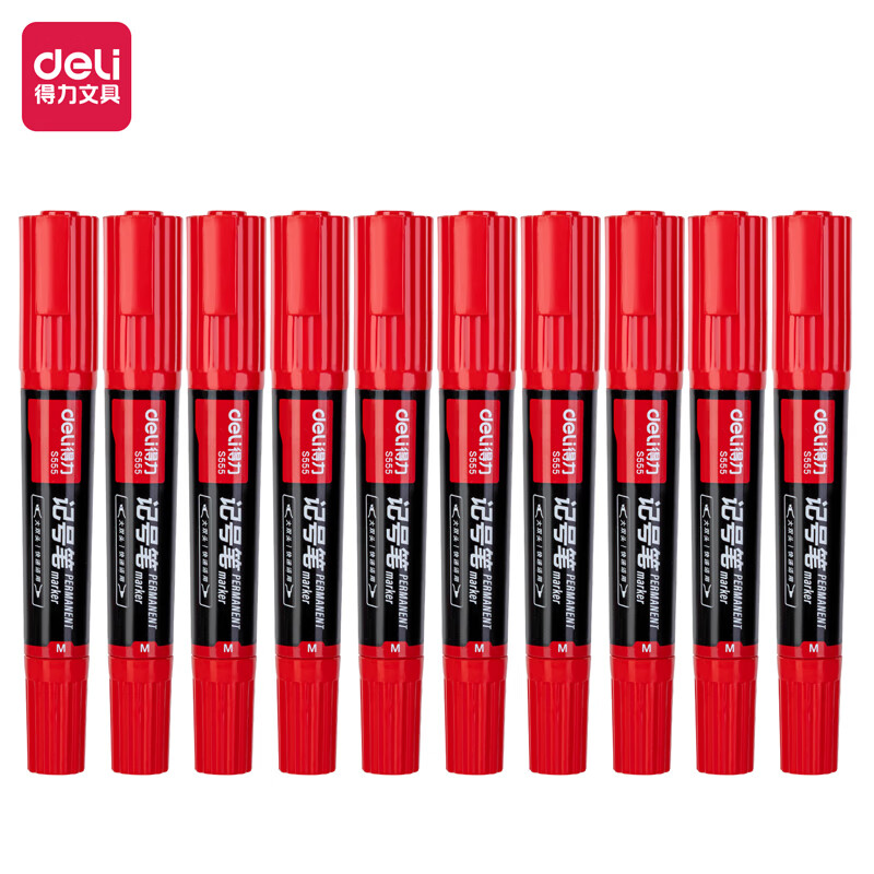 商品名稱:得力S555 大雙頭粗頭記號筆 多用物流辦公文具教學會議筆馬克筆 10支/盒