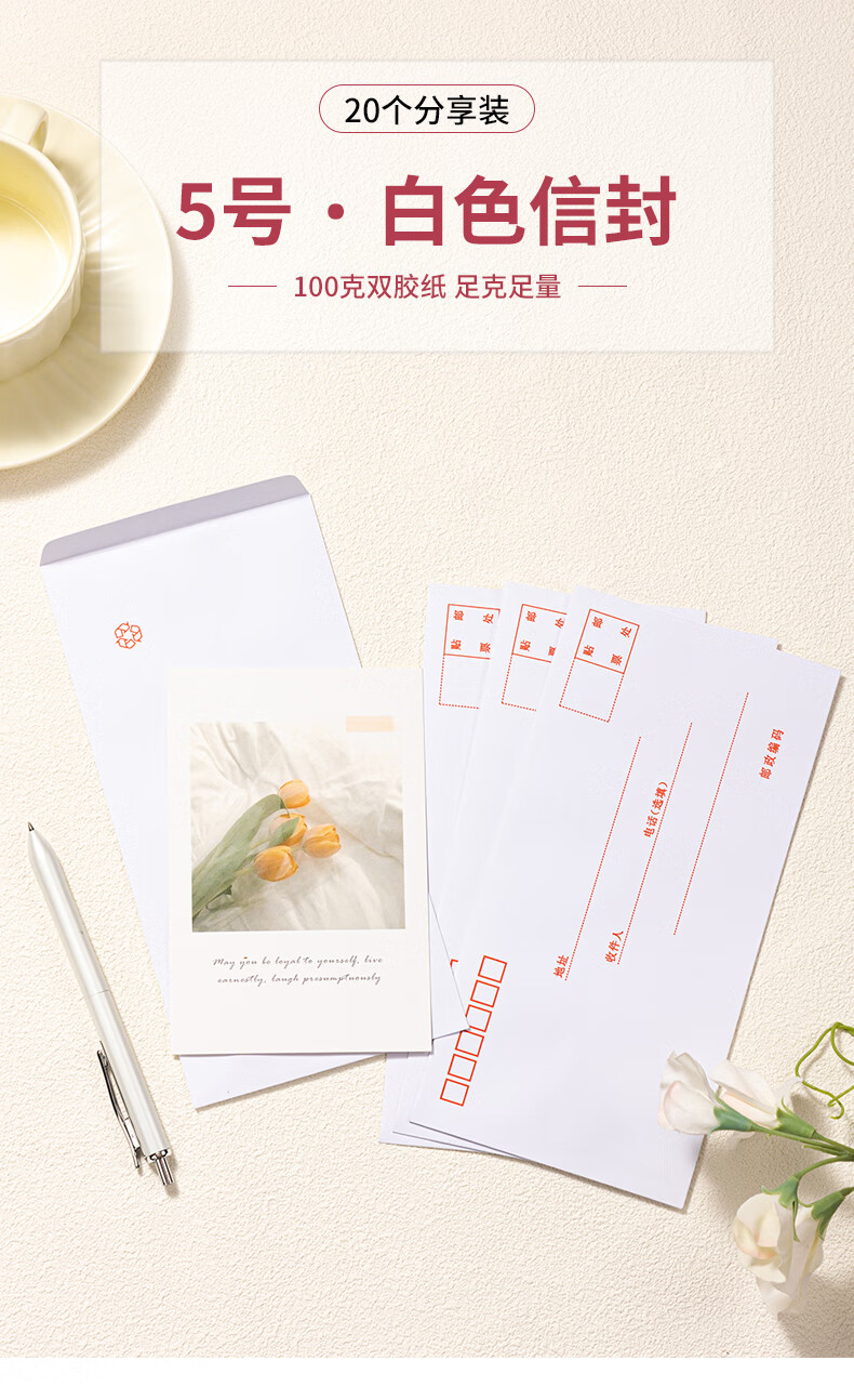 商品名稱:得力3422 白色信封 5號(hào)郵局標(biāo)準(zhǔn)信封220*110mm 20張/包