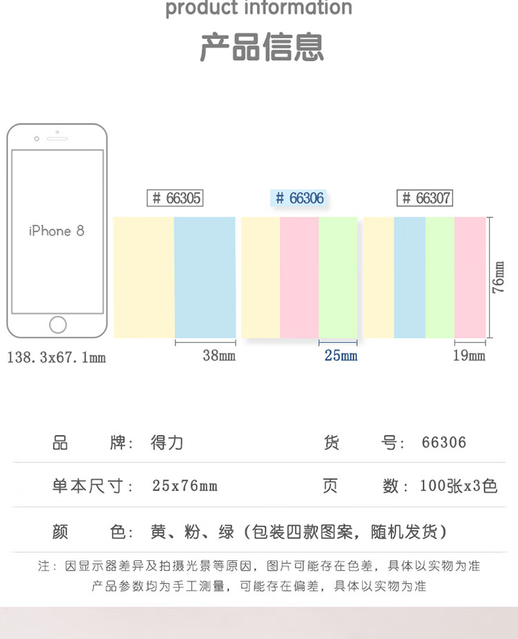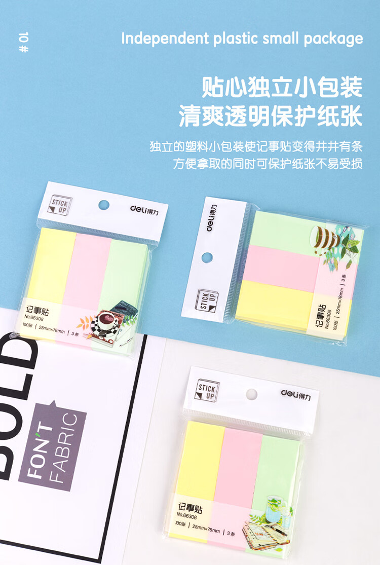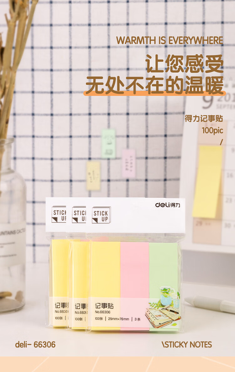 商品名稱:得力66306 便利貼 3色分條便簽紙 76*25mm記事貼 300張/包
