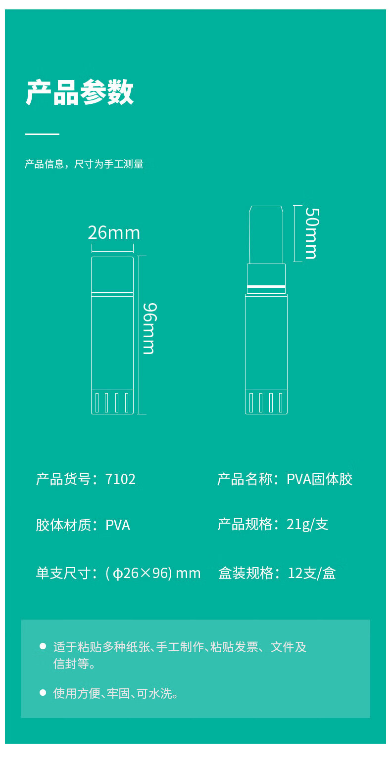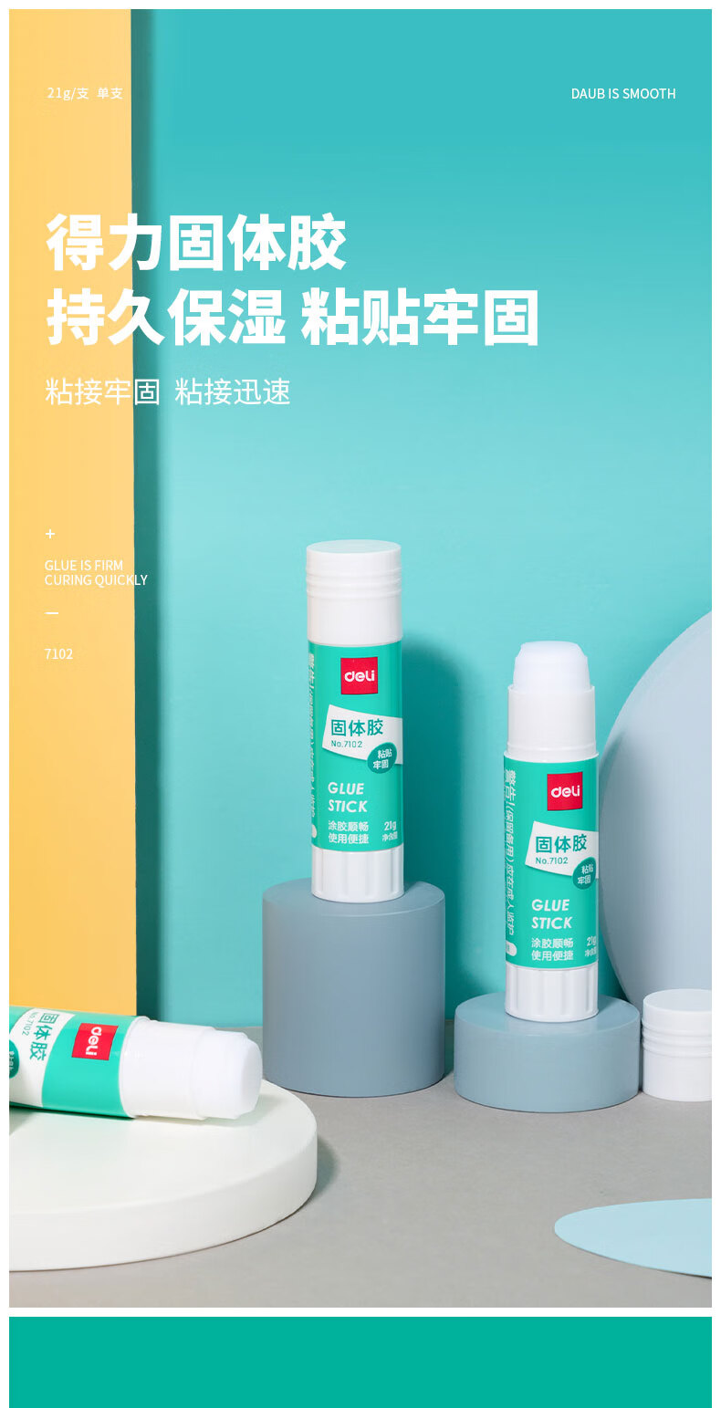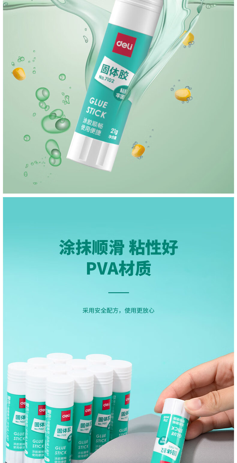 商品名稱:得力7102 固體膠水 21g高粘度PVA膠棒 速干耐用可水洗膠棒 單支裝