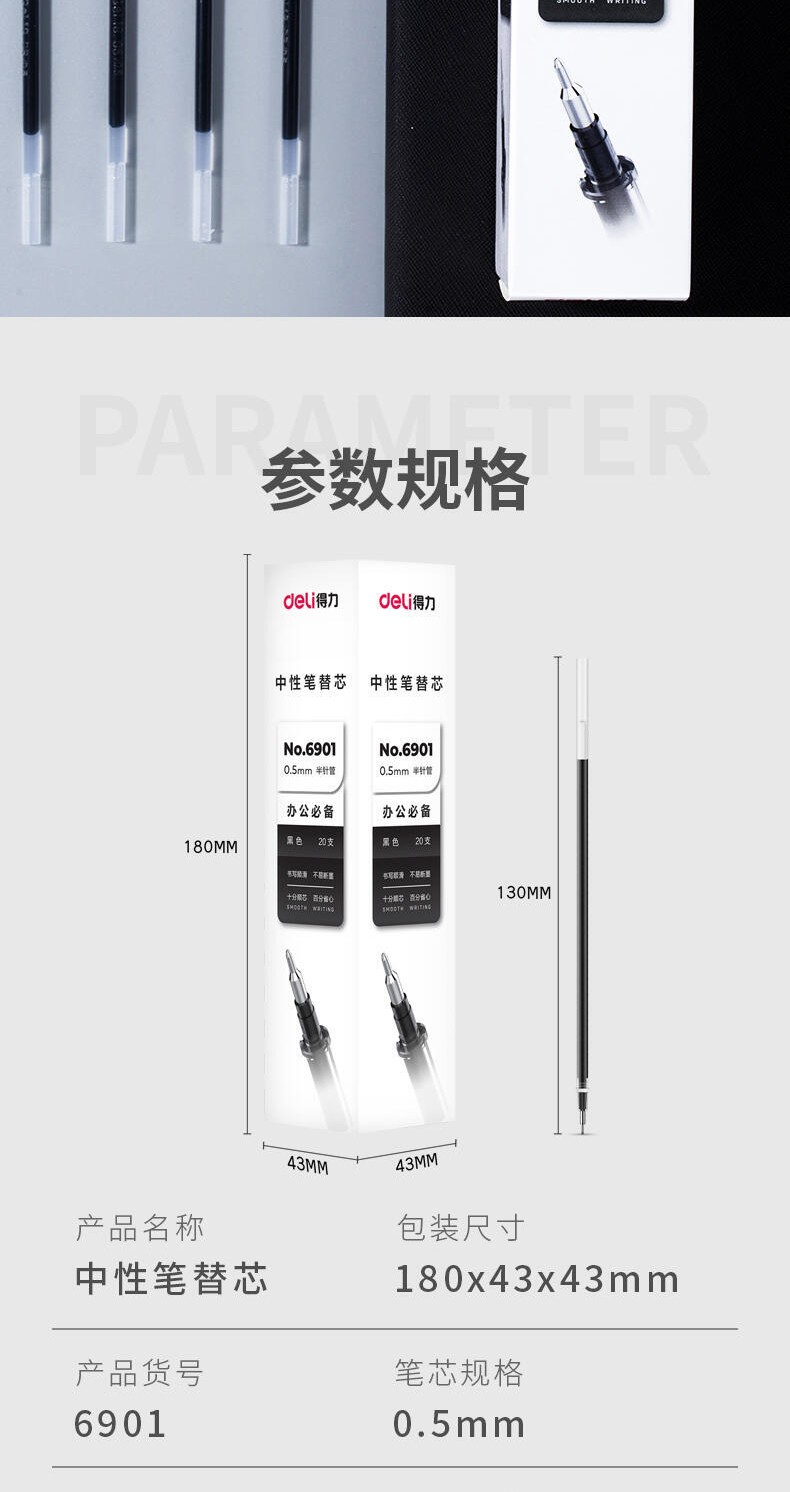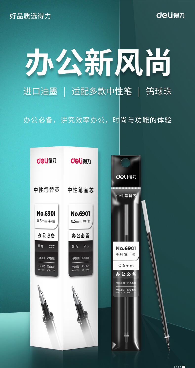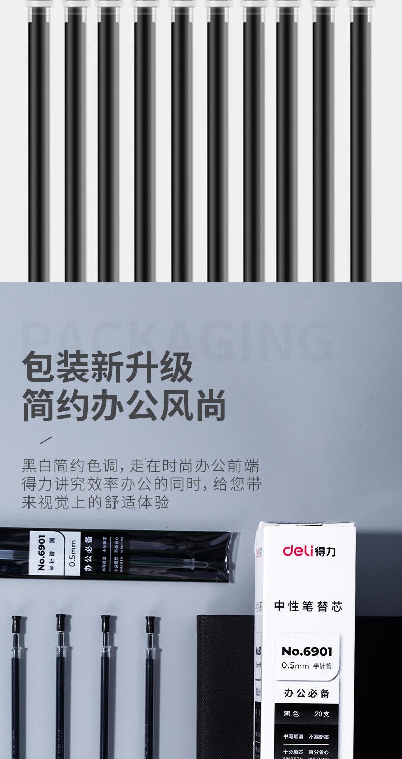 商品名稱(chēng):得力6901 筆芯 0.5mm半針管中性筆水筆簽字筆替芯 辦公用品 20支/盒