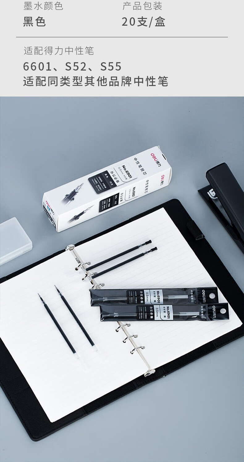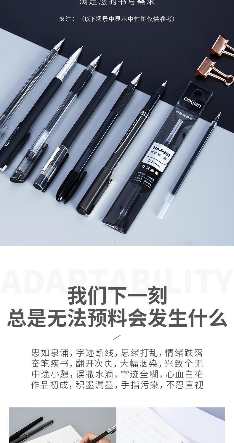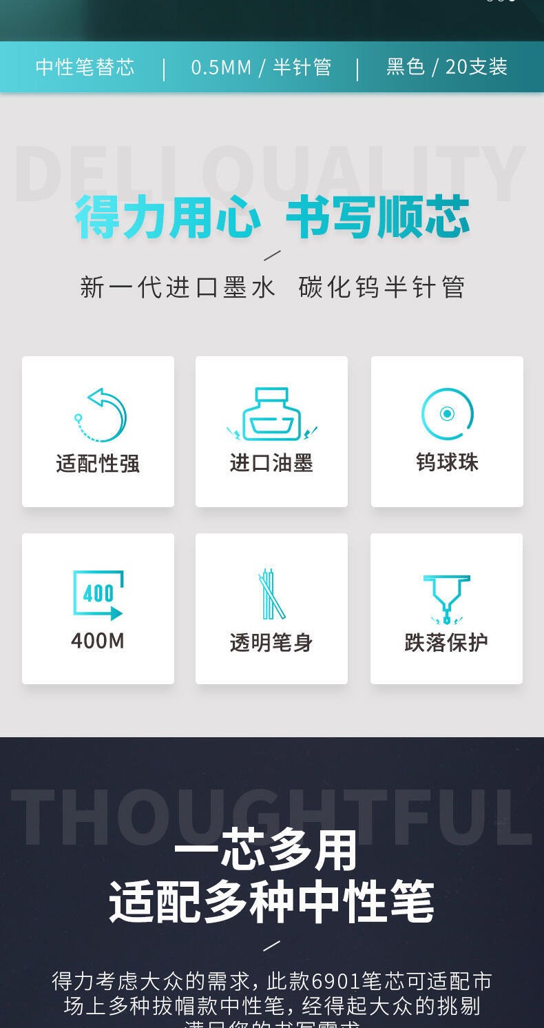 商品名稱(chēng):得力6901 筆芯 0.5mm半針管中性筆水筆簽字筆替芯 辦公用品 20支/盒