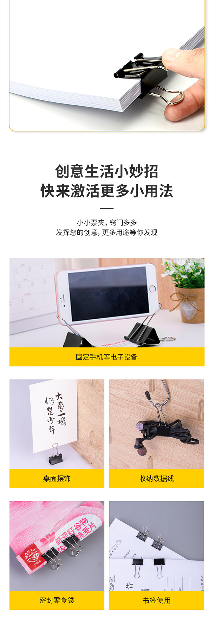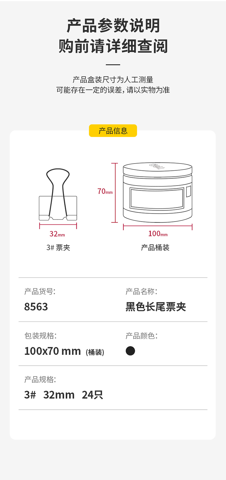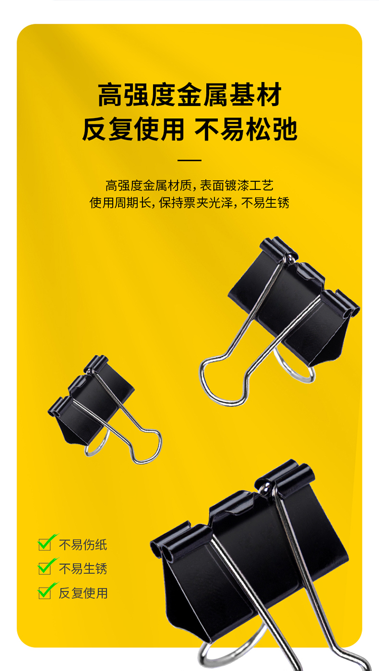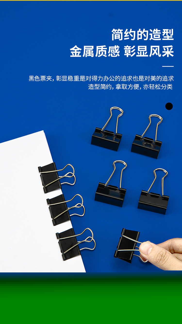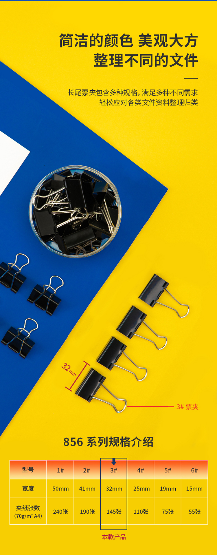商品名稱:得力8563 黑色長尾夾 32mm中號(hào)金屬燕尾夾票據(jù)文件夾子 24只/筒