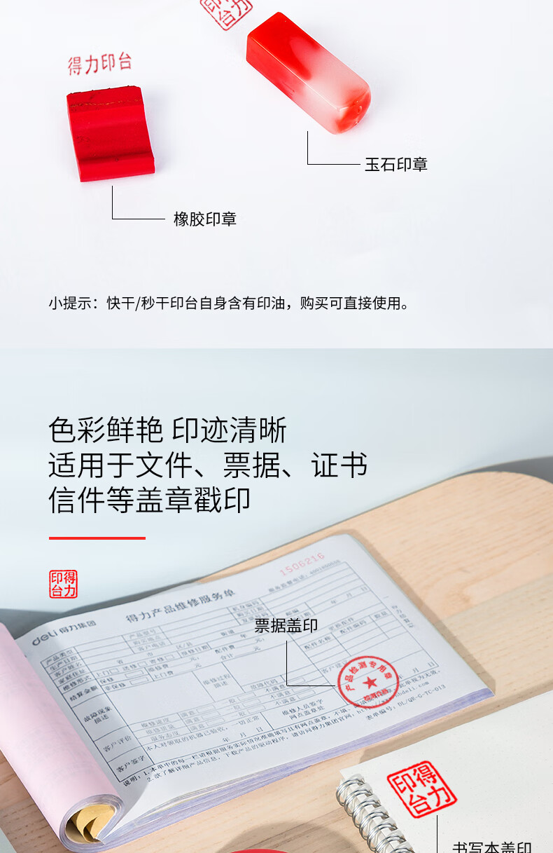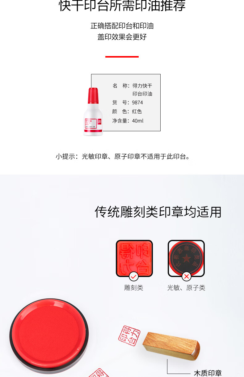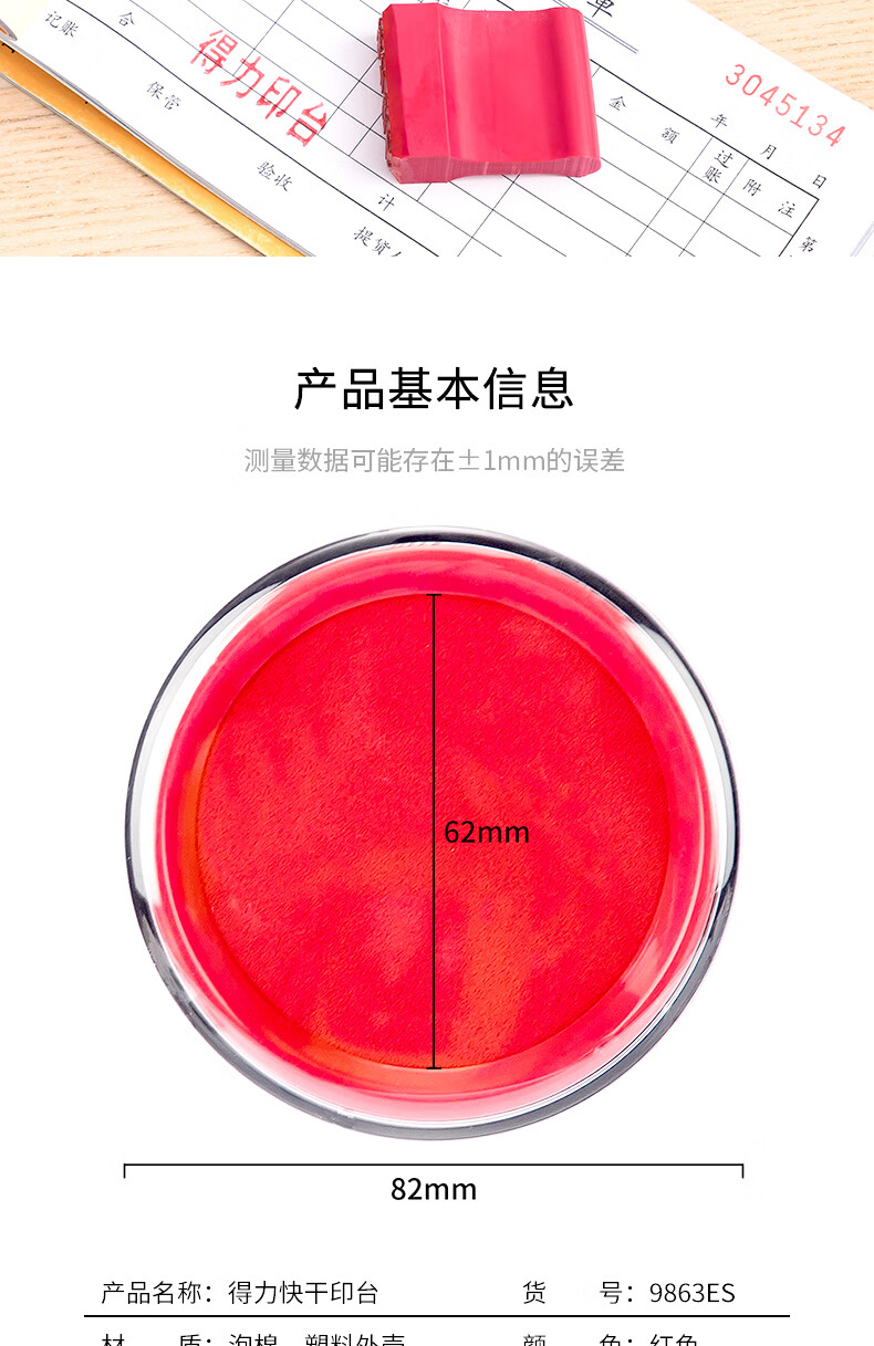 商品名稱:得力9863ES 快干印臺 φ82mm圓形財務(wù)用品 紅色 單個裝