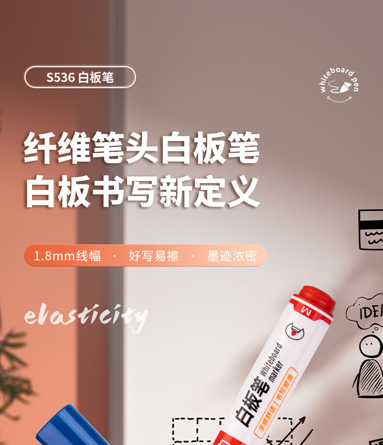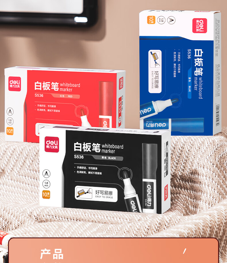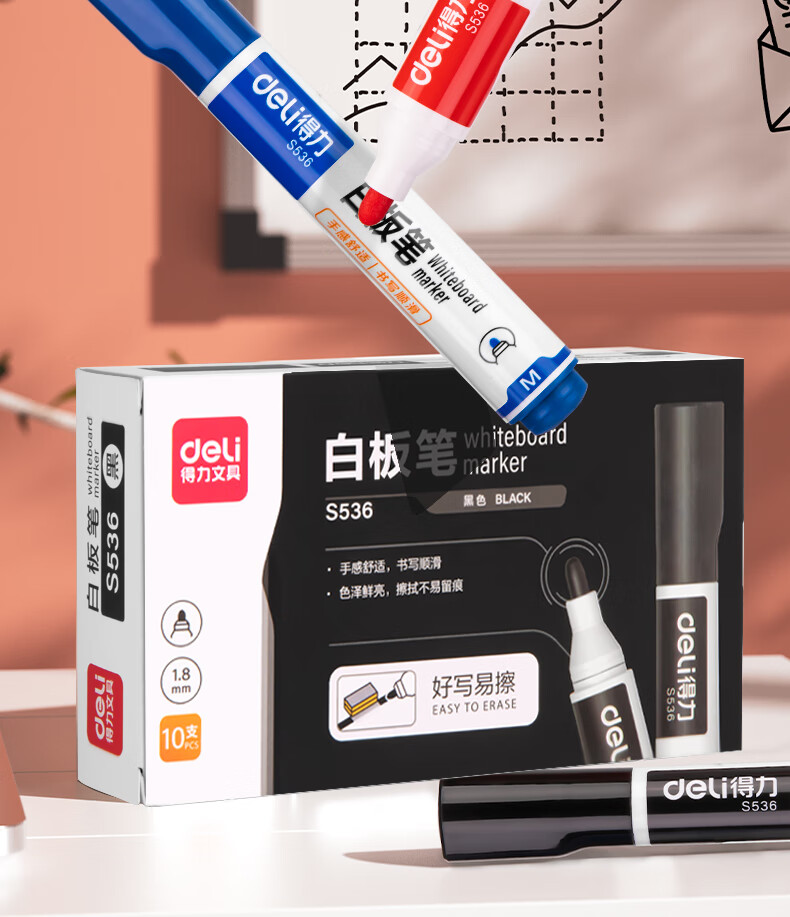 商品名稱:得力S536 白板筆 可擦易擦書寫順滑 10支/盒