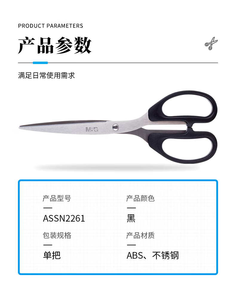 商品名稱:晨光ASSN2261 剪刀 210mm大號(hào)手工剪紙刀 辦公用品 黑色 單把裝