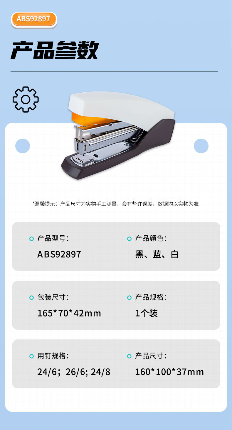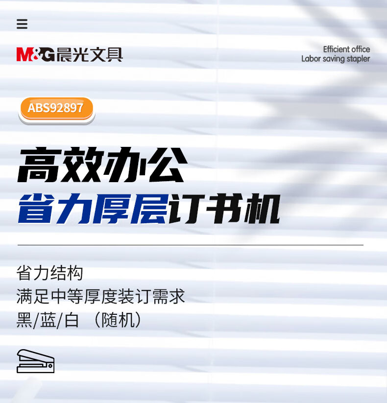 商品名稱:晨光ABS92897 12#厚層訂書機(jī) 商務(wù)省力訂書器 辦公用品 單個裝 顏色隨機(jī)