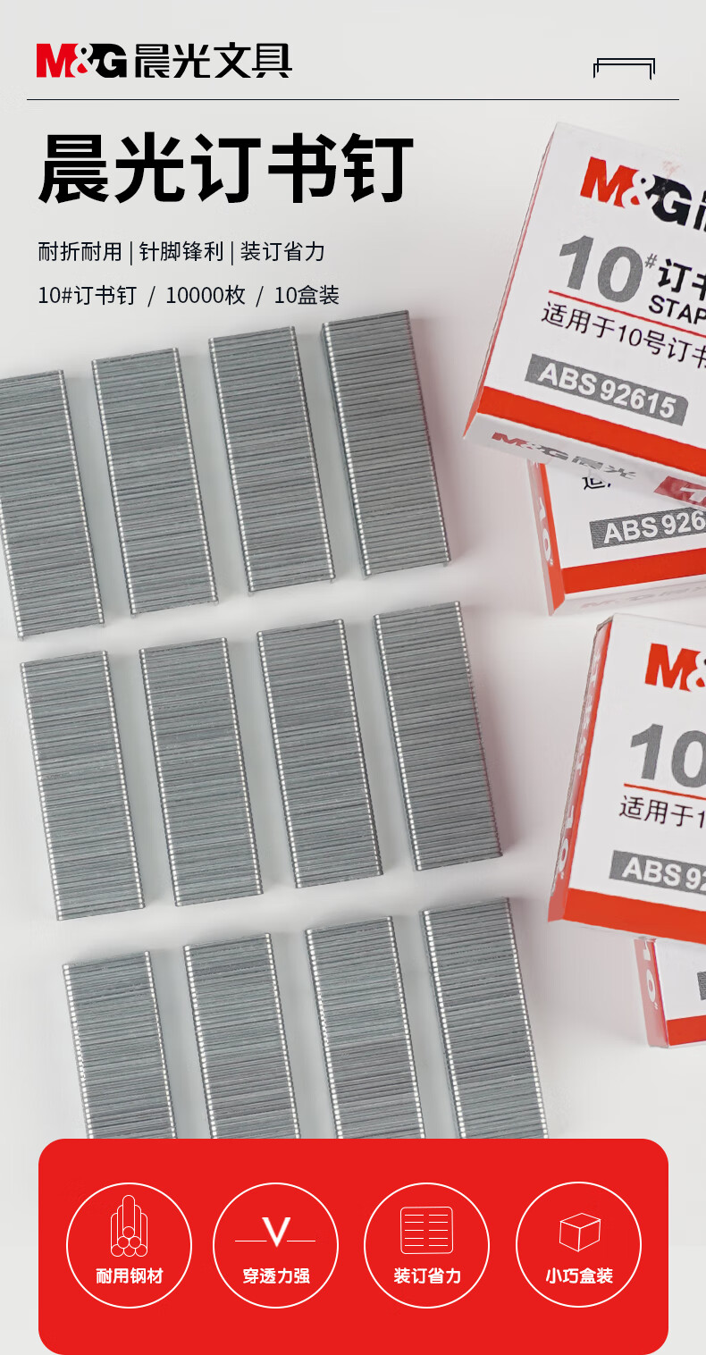 商品名稱:晨光ABS92615 訂書釘 10#易穿透訂書針 辦公用品 1000枚/盒 10盒裝