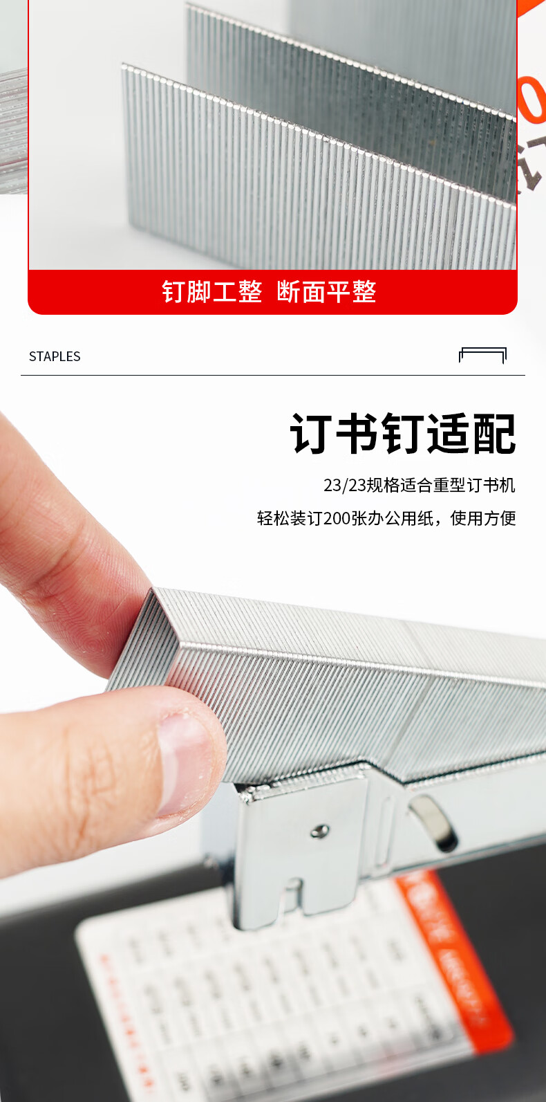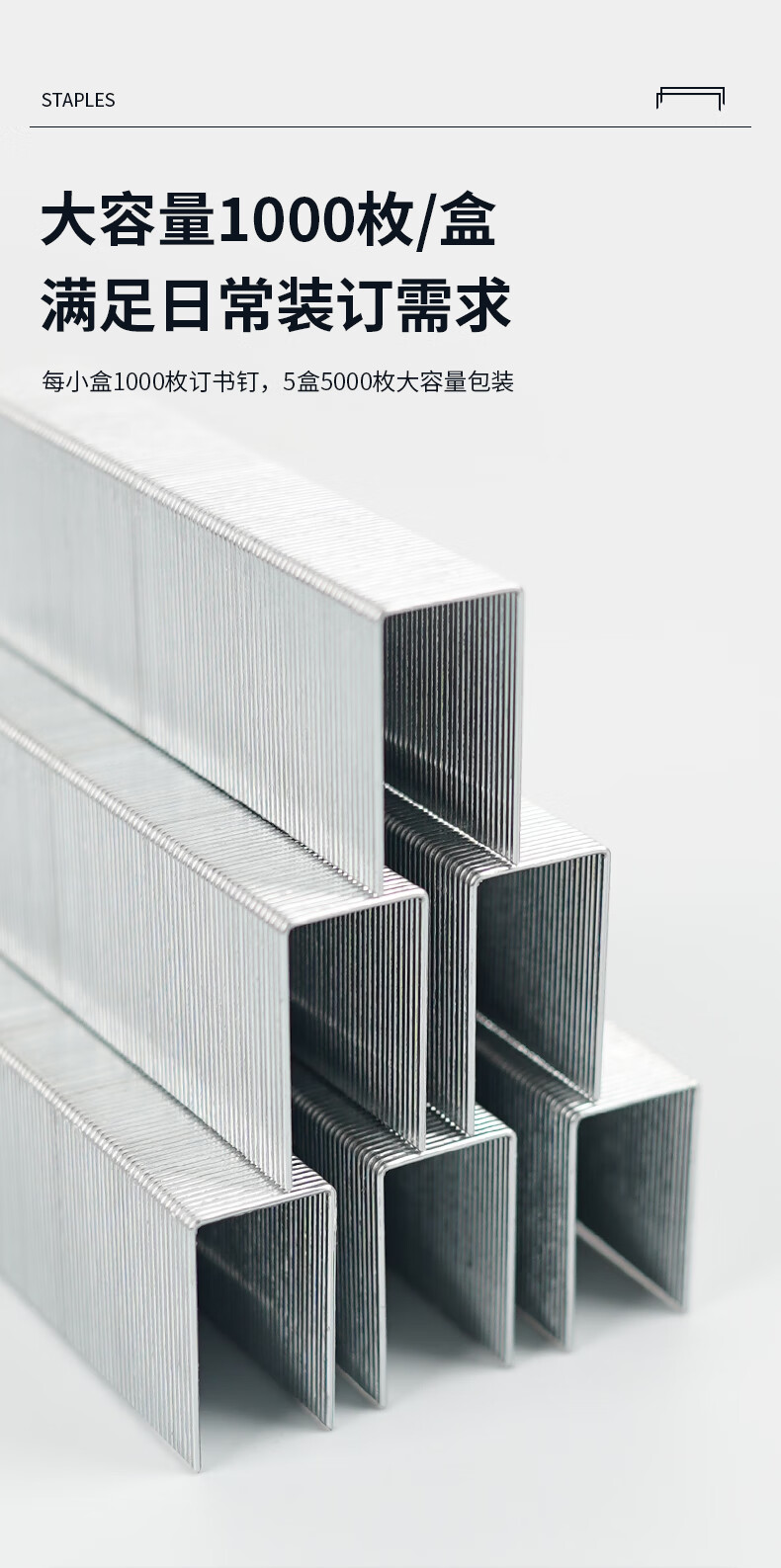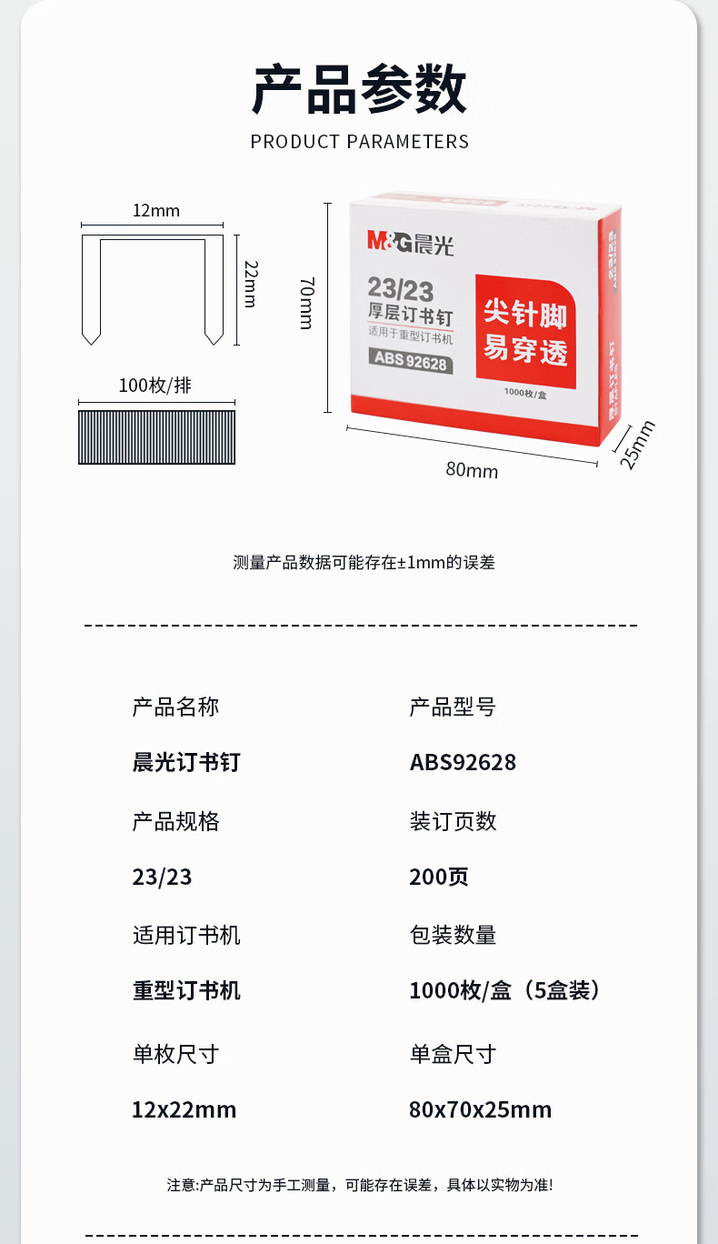 商品名稱:晨光ABS92628 訂書釘 23/23號厚層易穿透重型訂書針 辦公用品 1000枚/盒 5盒裝