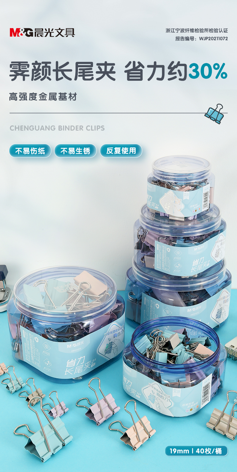 商品名稱:晨光ABS916Y9 省力長尾夾 5#19mm彩色金屬燕尾夾 莫蘭迪系列票據(jù)夾子 40只/筒