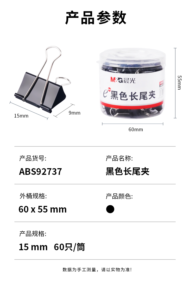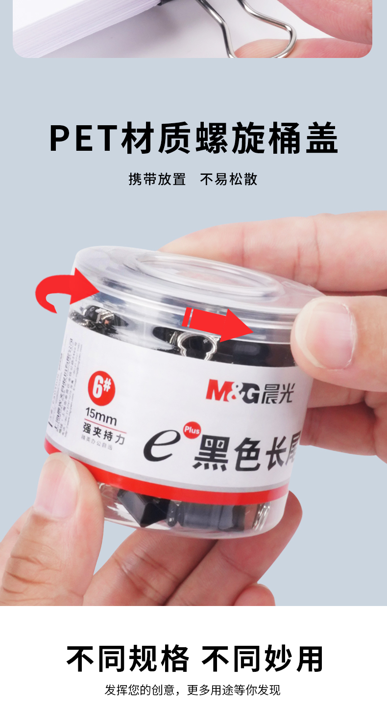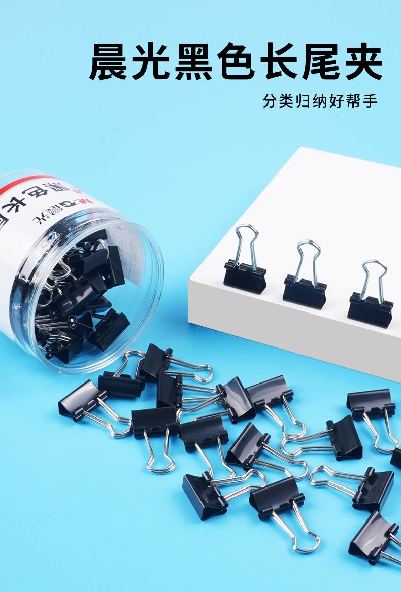 商品名稱:晨光ABS92737 黑色長尾夾 6#15mm小號金屬票據(jù)夾 Eplus系列燕尾夾 60只/筒