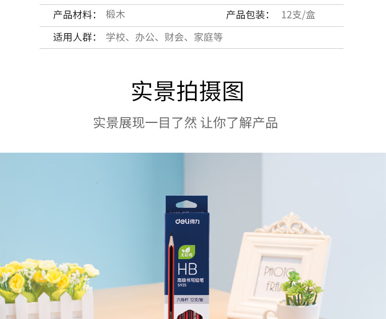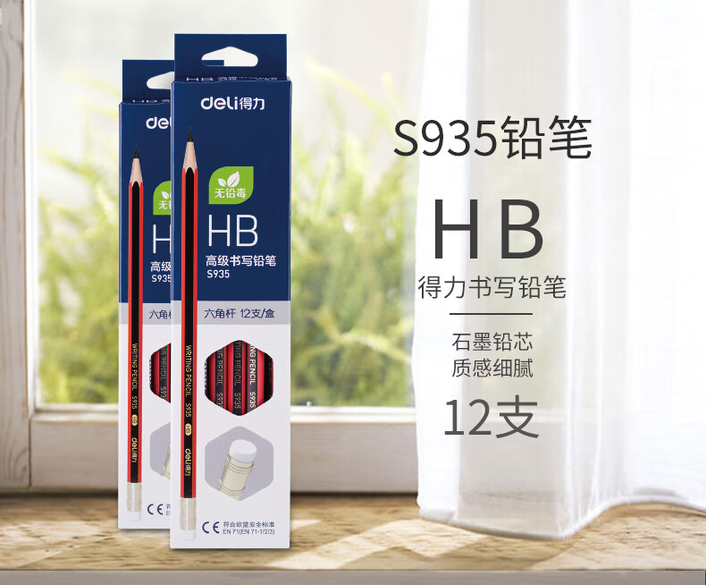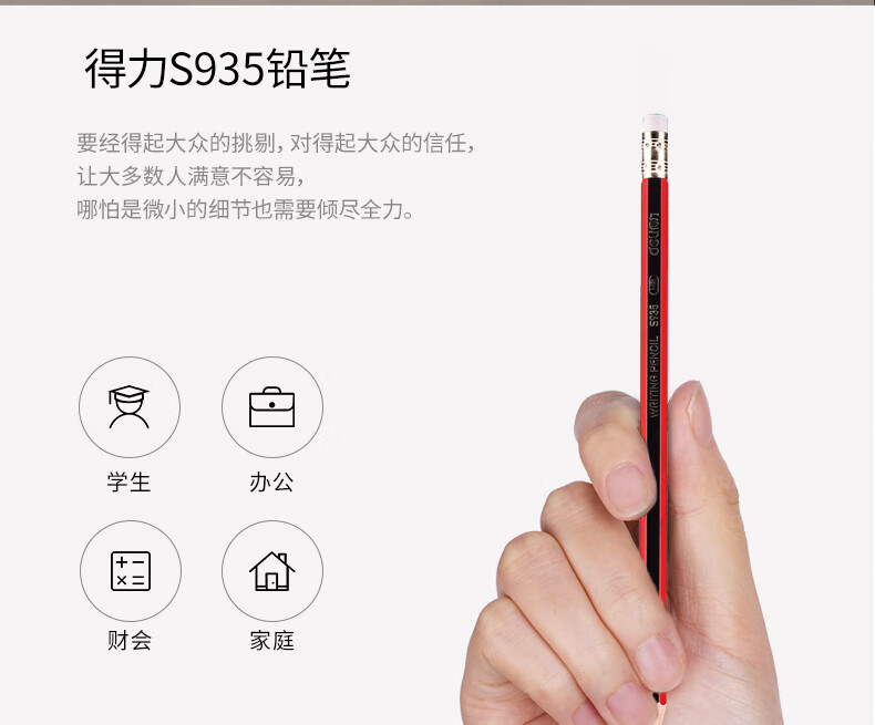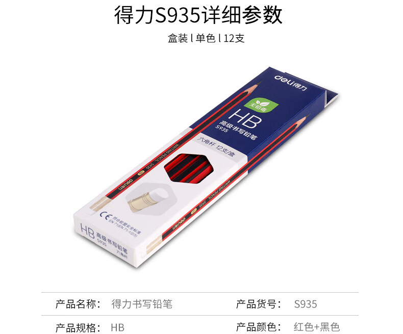 商品名稱:得力S935 HB鉛筆 高級鉛筆(紅色)(12支/盒)