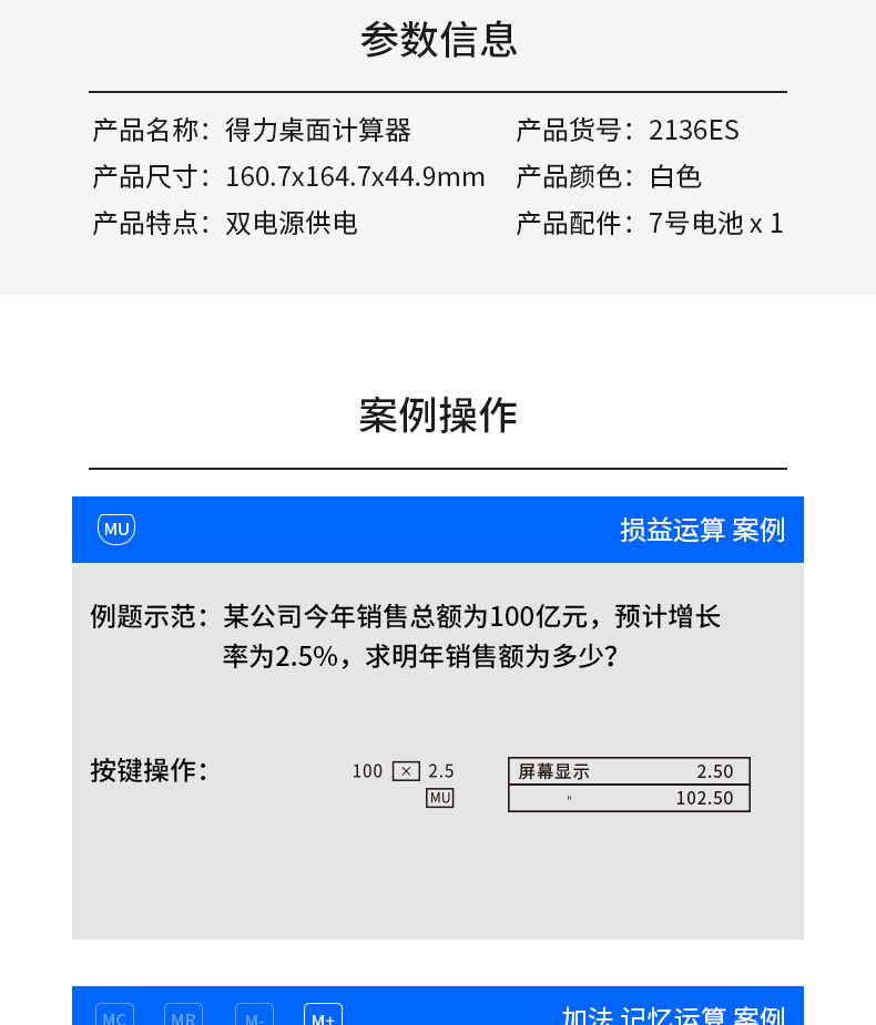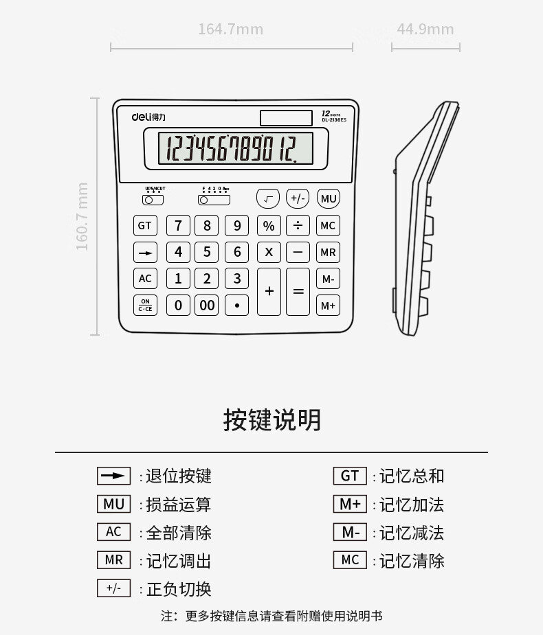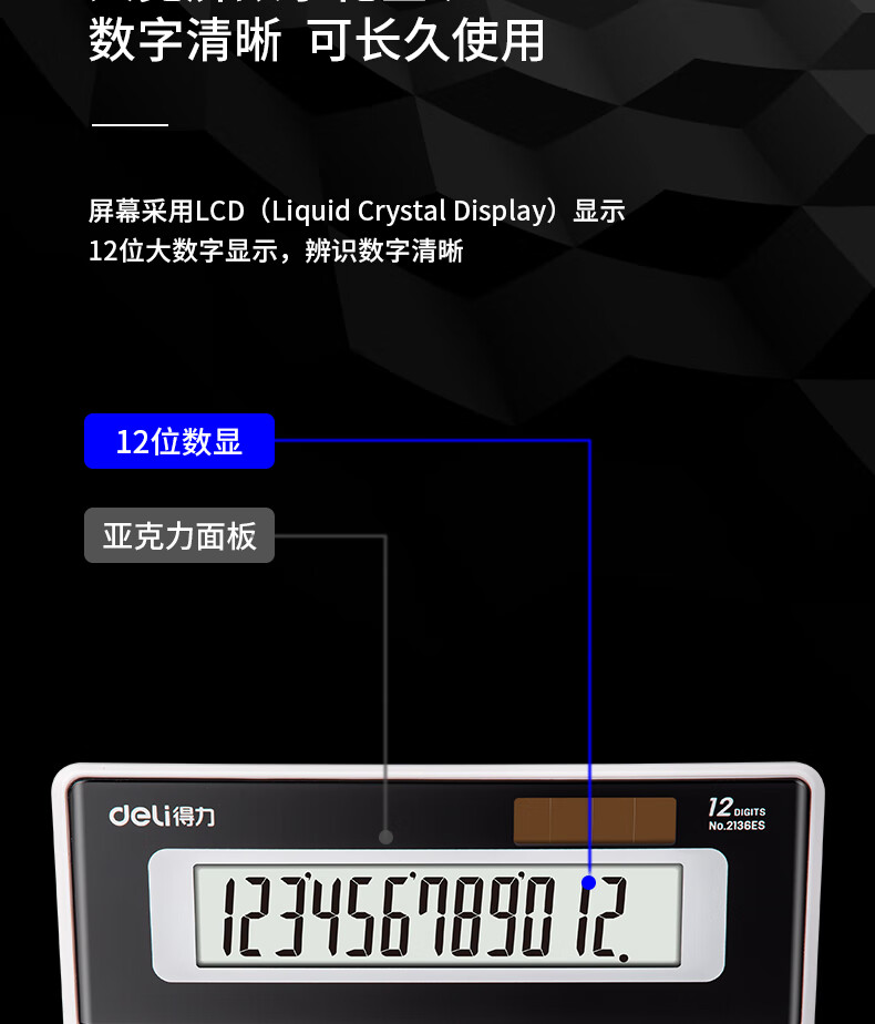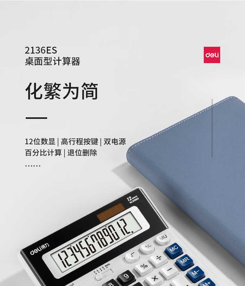 商品名稱:得力2136ES 雙電源電腦按鍵計(jì)算器 12位大屏大號計(jì)算機(jī) 單個(gè)裝