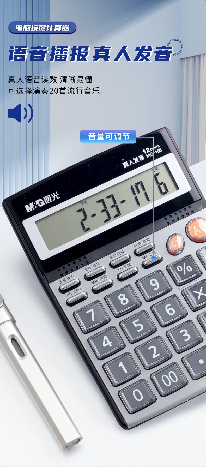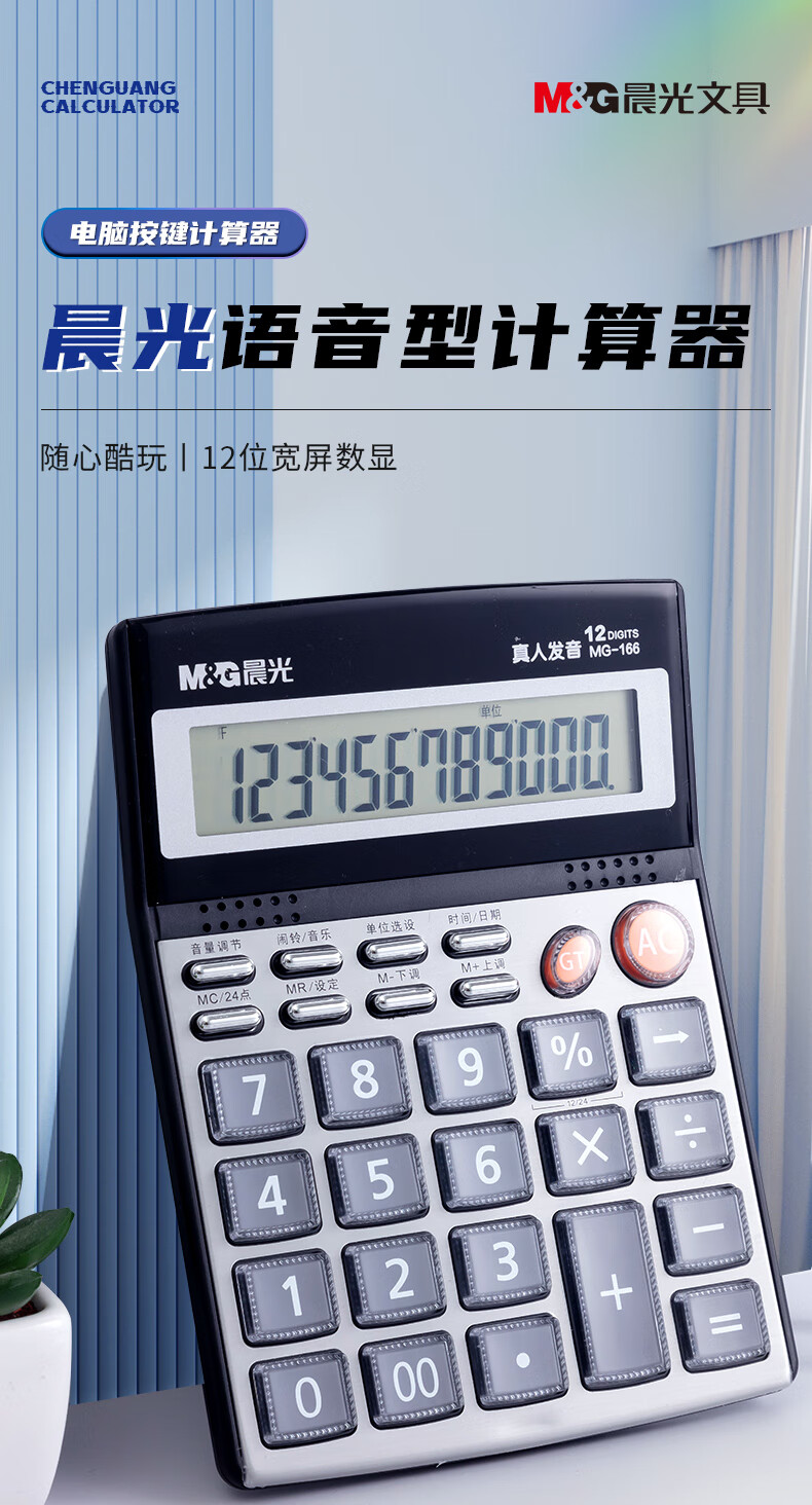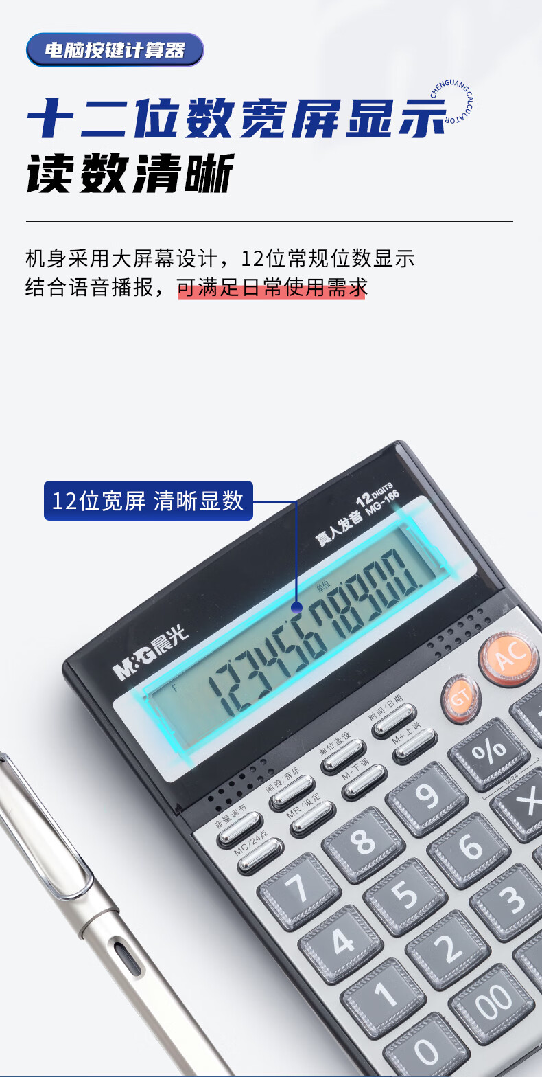商品名稱:晨光ADG98715 大屏金屬面板真人語音計算器 12位顯示大屏幕桌面計算機(jī) 單個裝