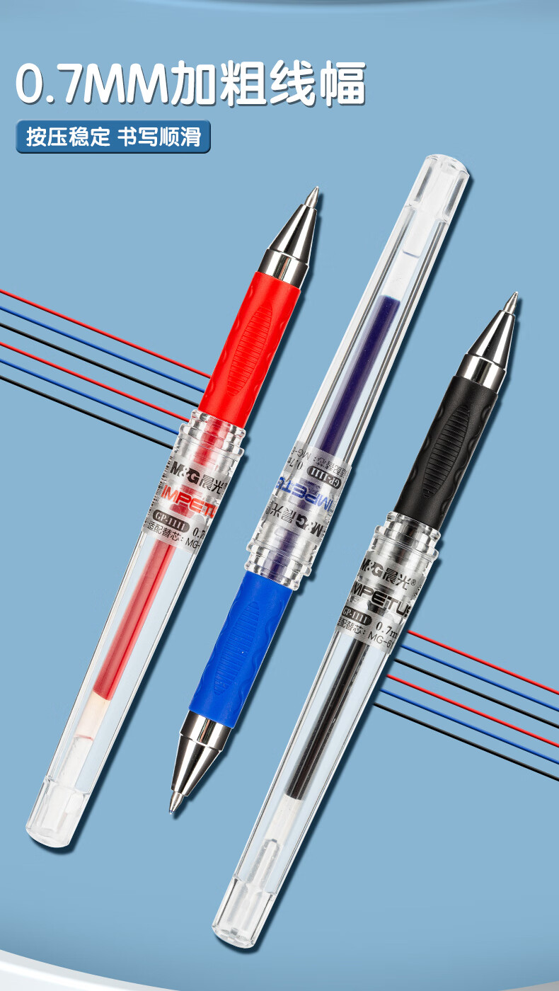 商品名稱:晨光GP1111 中性筆 0.7mm大容量拔蓋子彈頭練字簽字筆 辦公水筆 12支/盒