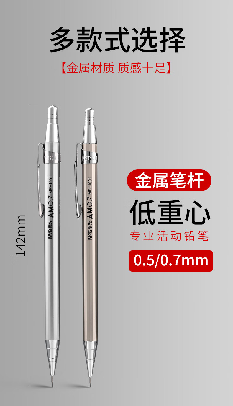商品名稱(chēng):晨光MP1001 鐵桿自動(dòng)鉛筆 0.7簡(jiǎn)約經(jīng)典金屬自動(dòng)鉛筆不易斷芯黑 單支裝