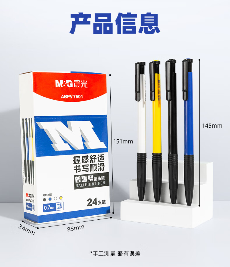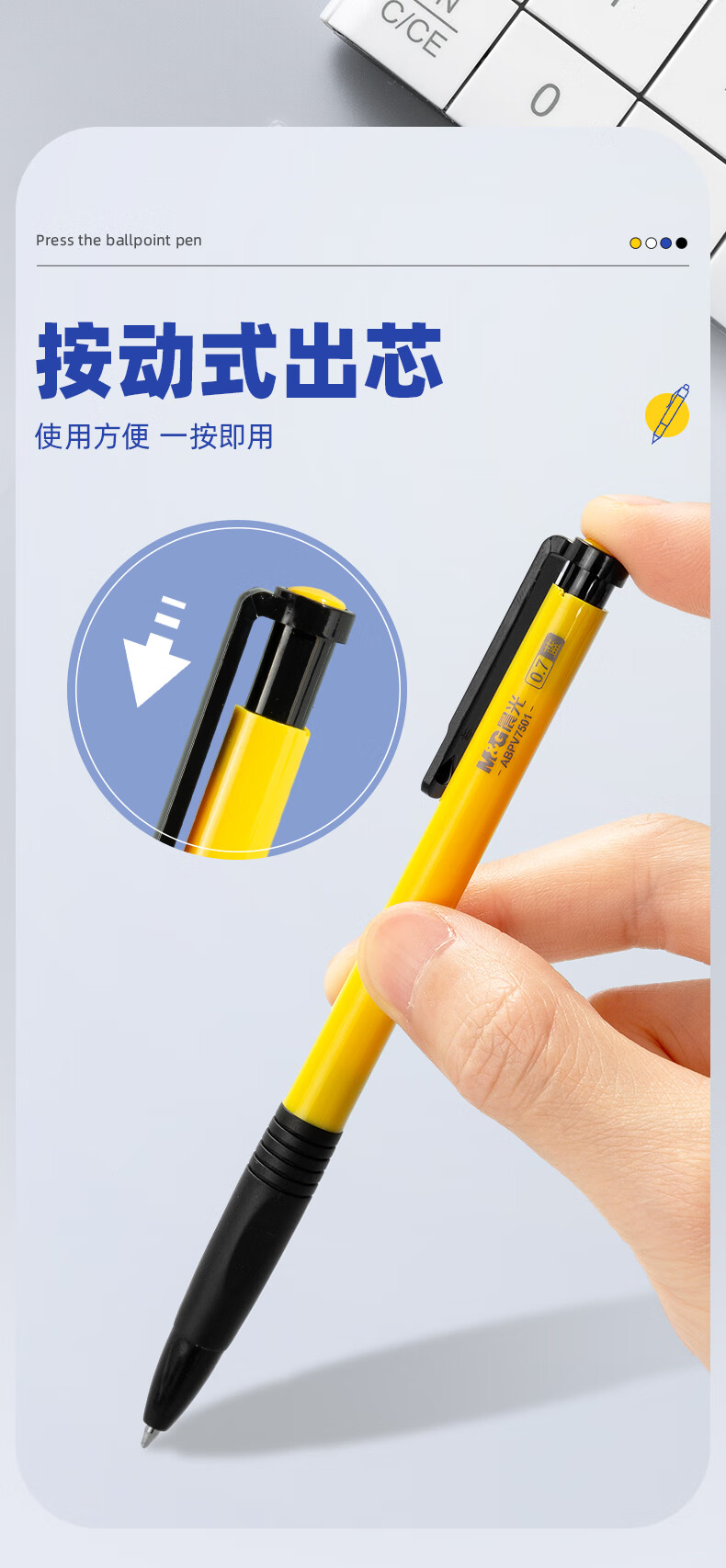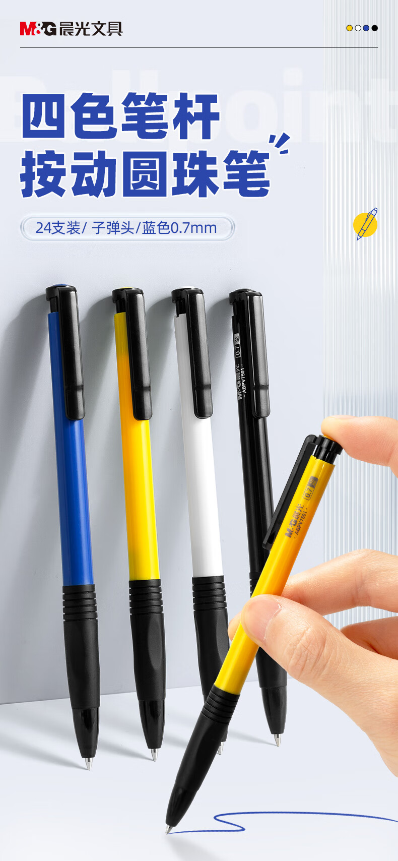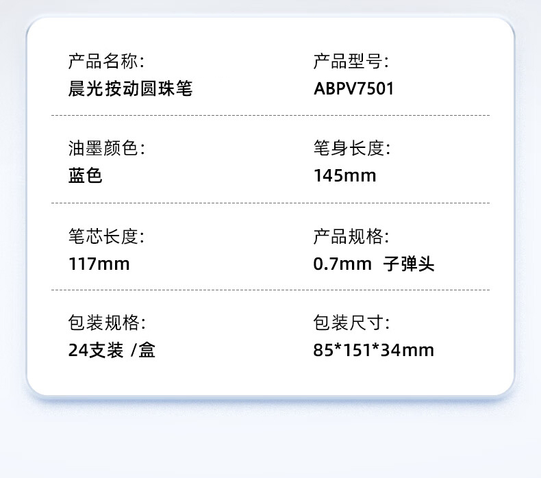 商品名稱:晨光ABPV7501 按動圓珠筆 0.7mm經典子彈頭原子筆 普惠型中油筆 24支/盒