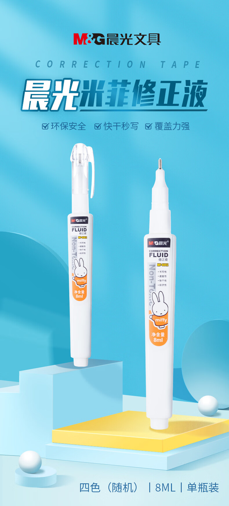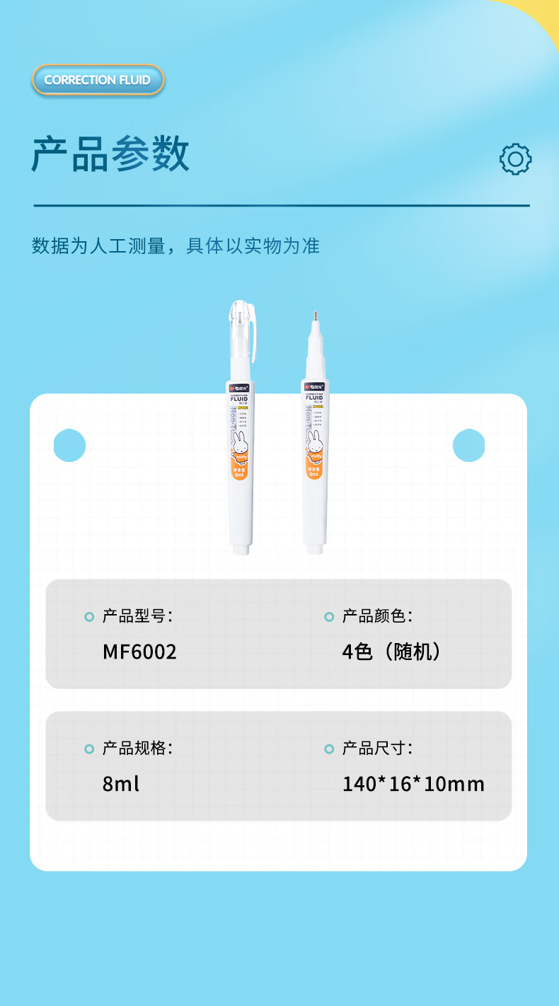 商品名稱:晨光MF6002 修正液 8ml涂改液改正液 米菲系列修正筆 顏色隨機(jī) 單支裝