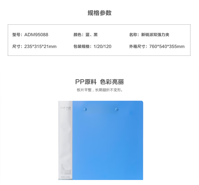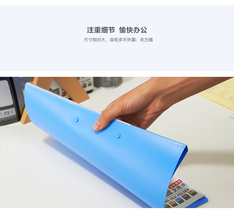 商品名稱:晨光ADM95088 新銳派A4文件夾 PP材質(zhì)彈力夾長押夾雙強(qiáng)力板夾+插頁袋 藍(lán)色 單個(gè)裝