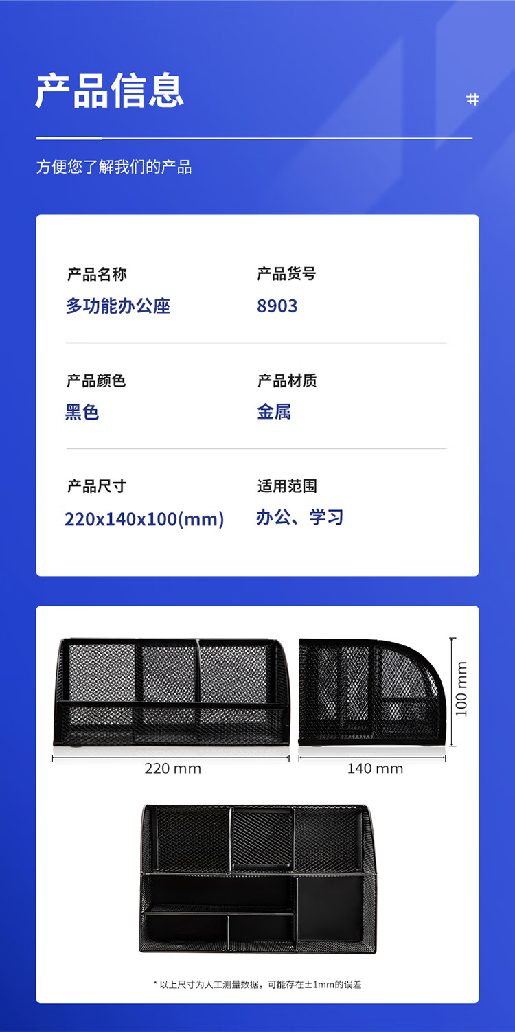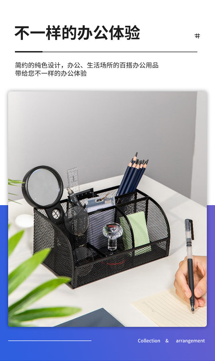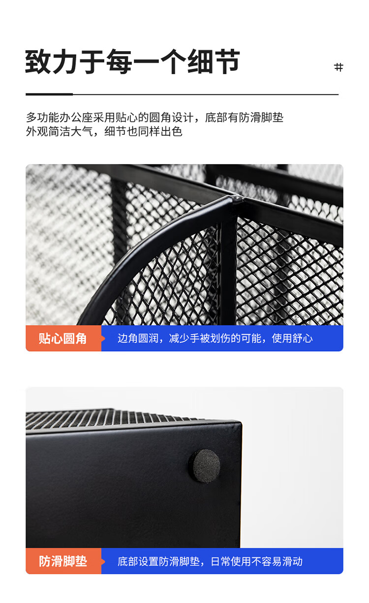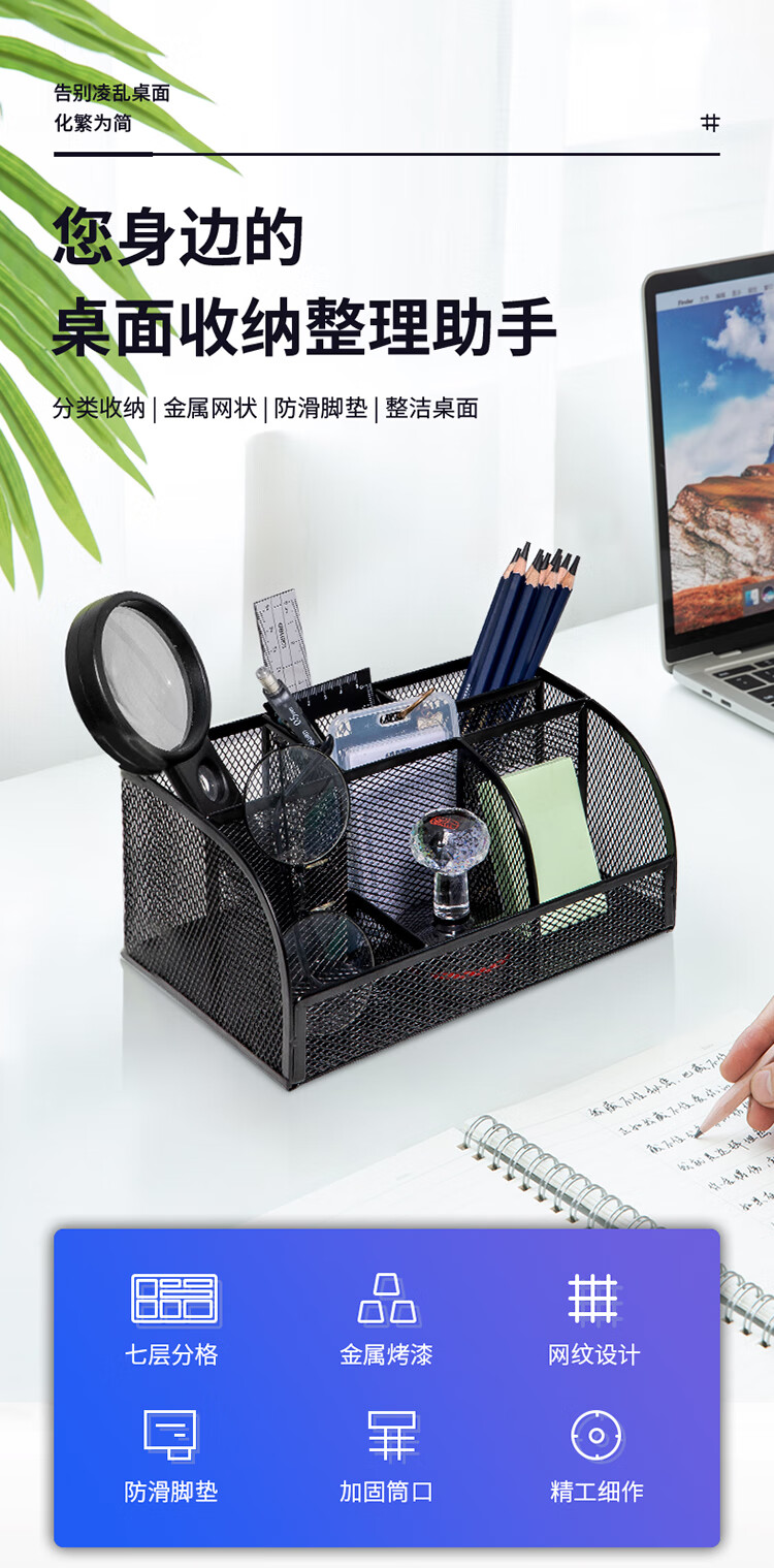 商品名稱:得力8903 多功能七格組合筆筒 金屬網(wǎng)紋桌面收納盒 辦公用品 黑色 單個(gè)裝