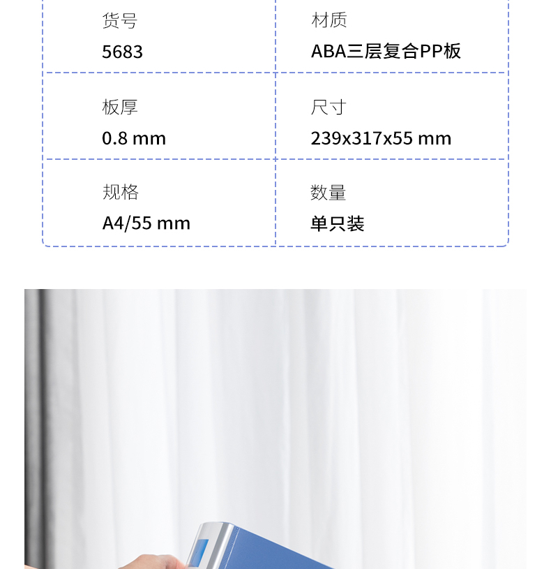 商品名稱:得力5683 檔案盒 55mmA4加厚塑料文件盒資料盒 單個(gè)裝