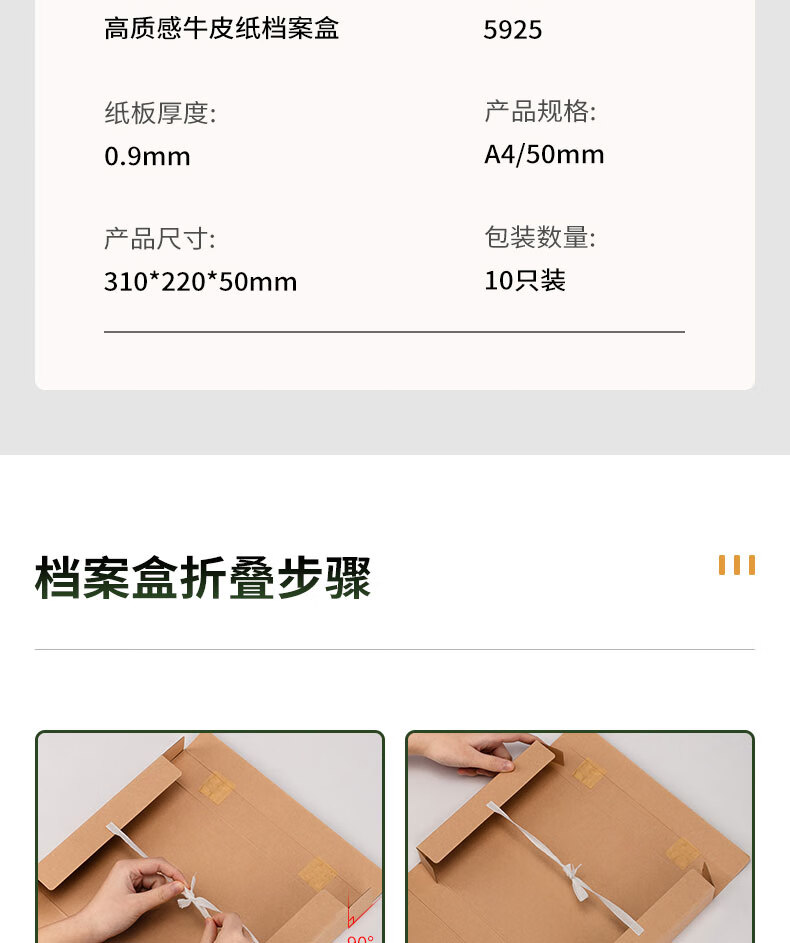 商品名稱:得力5925 牛皮紙檔案盒 50mm純漿250g加厚文件盒 財務用品 10只/包
